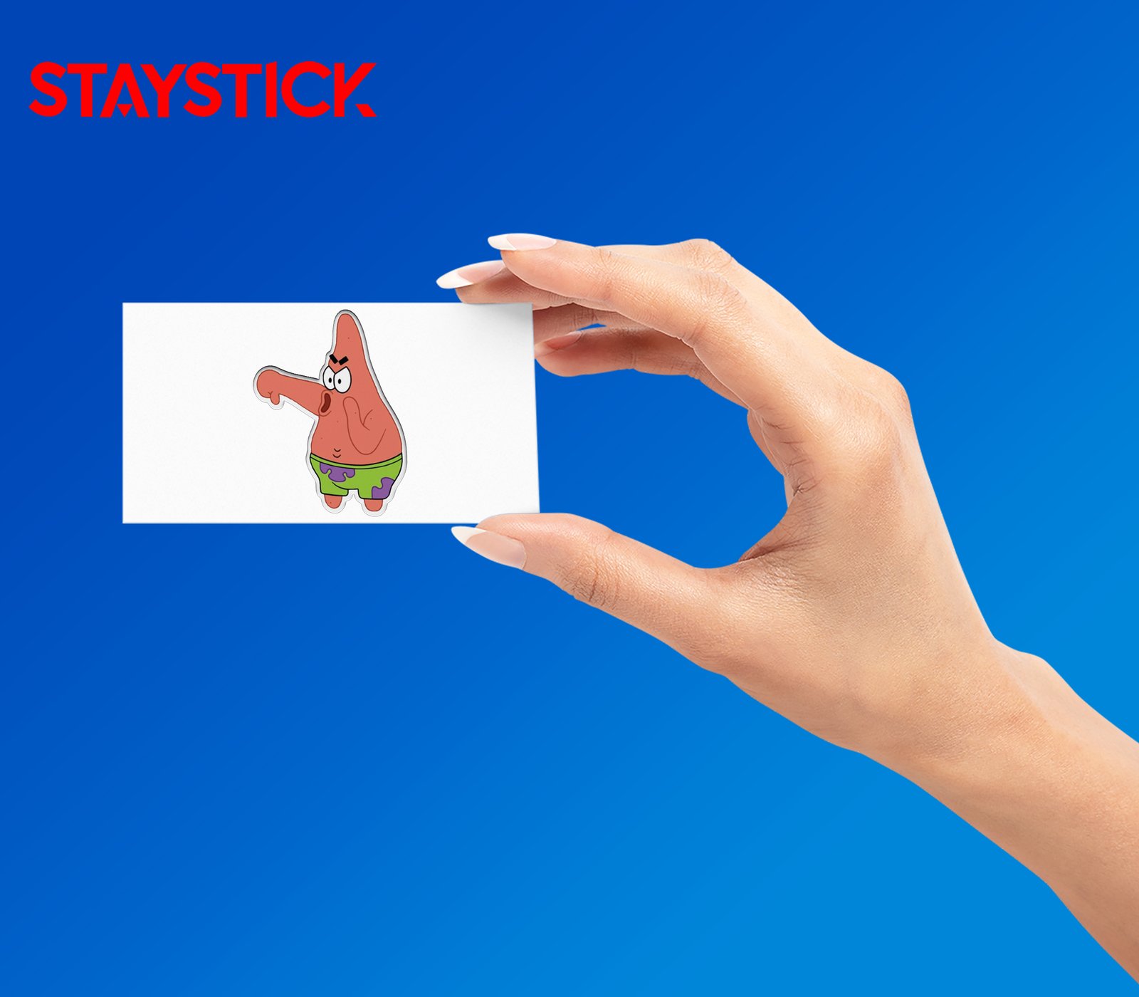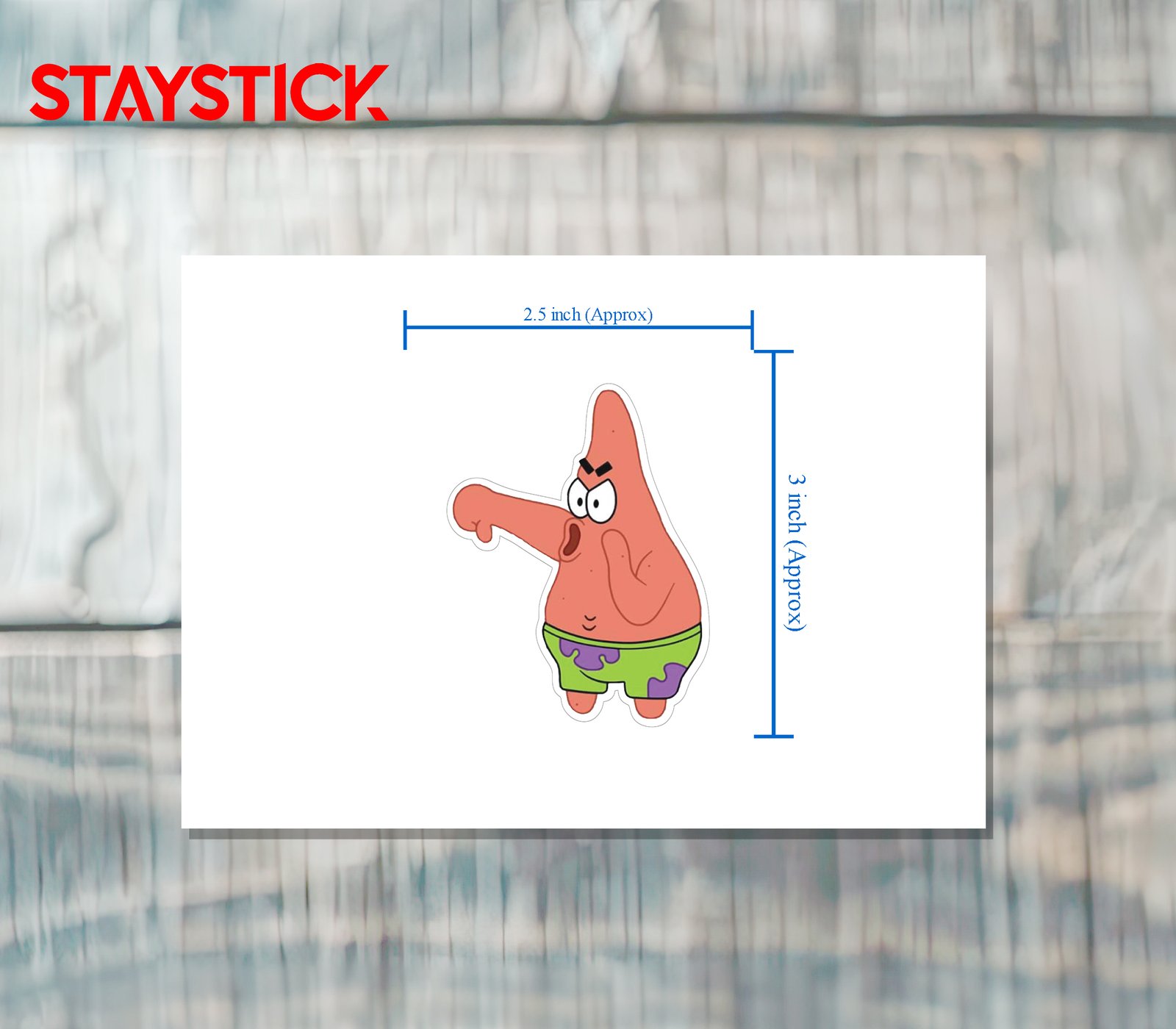 Show off your love for SpongeBob SquarePants with this hilarious sticker featuring Patrick Star in an angry mood! Made from durable, high-quality vinyl, this sticker is perfect for decorating your laptop, water bottle, phone case, or any other smooth surface. Add a touch of Bikini Bottom humor to your life with this unique and eye-catching Patrick Star sticker. Great for collectors and fans of all ages.