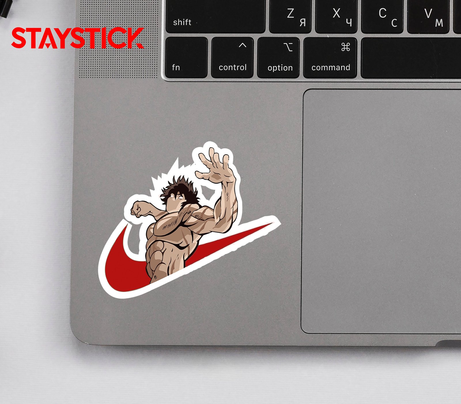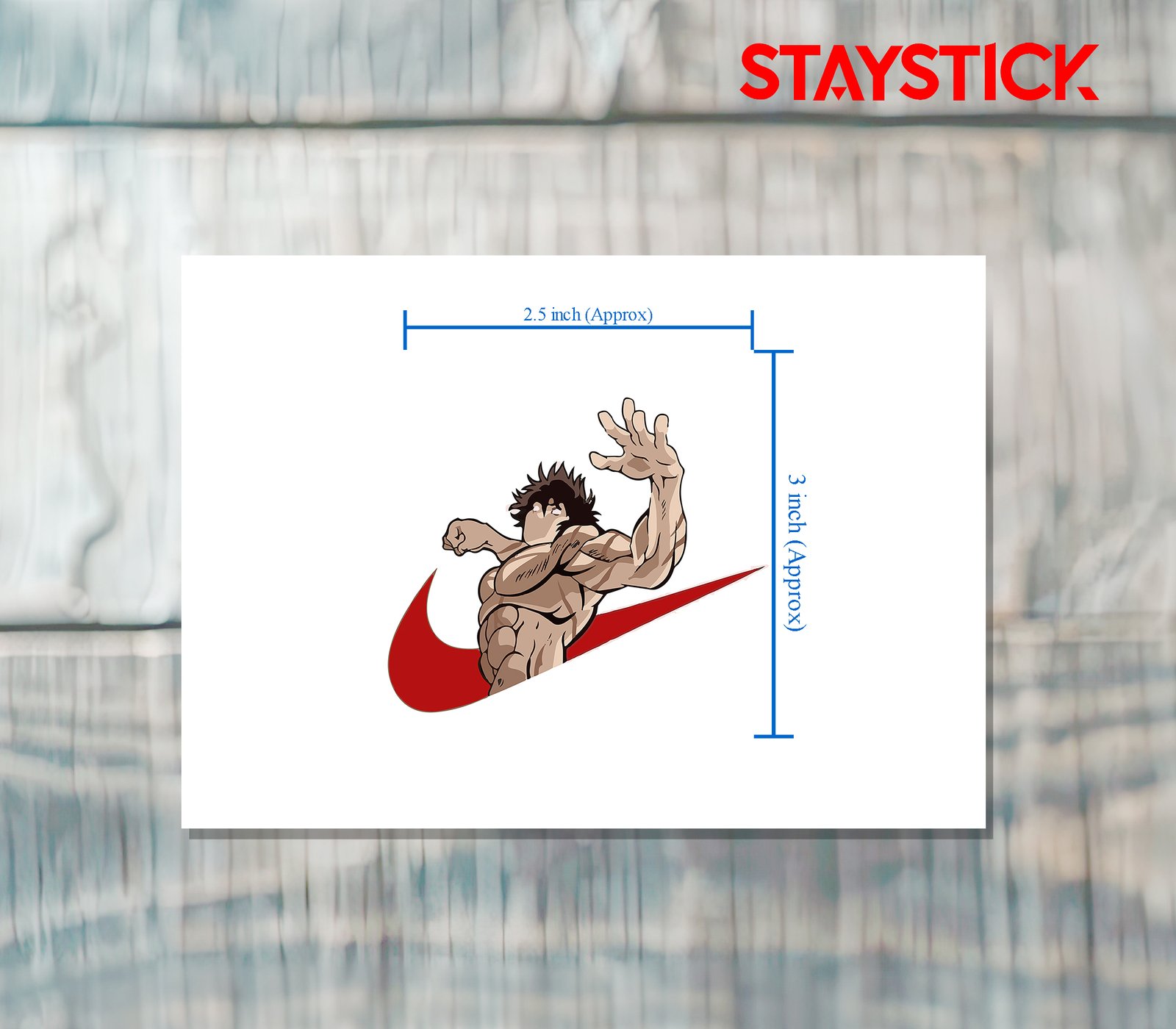 This sticker features a powerful and muscular anime-style character striking an intense action pose, radiating strength and energy. With exaggerated muscles, sharp details, and a dynamic stance over a bold swoosh-like design, it captures a sense of raw power, confidence, and unstoppable determination.