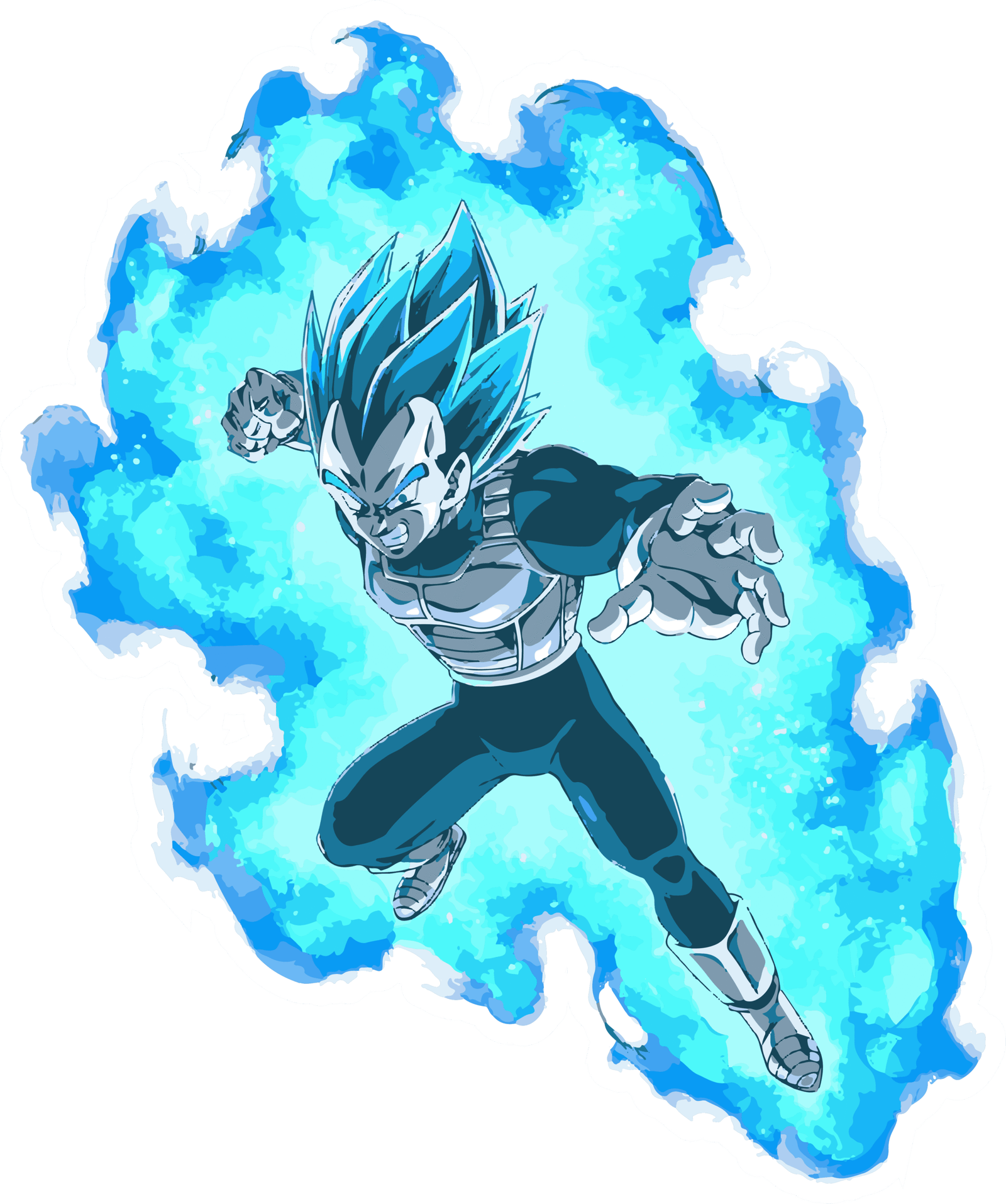 This stunning sticker features a fierce anime warrior radiating immense power and determination. Surrounded by a blazing, electric-blue aura, the character is captured in an intense battle stance, showcasing their strength, speed, and unstoppable energy. The spiky blue hair, piercing eyes, and armored outfit highlight their readiness for combat, while the glowing aura emphasizes their transformation and overwhelming force. This sticker perfectly symbolizes courage, resilience, and the spirit of a true fighter, making it an ideal choice for fans of epic battles, anime culture, and powerful visuals.