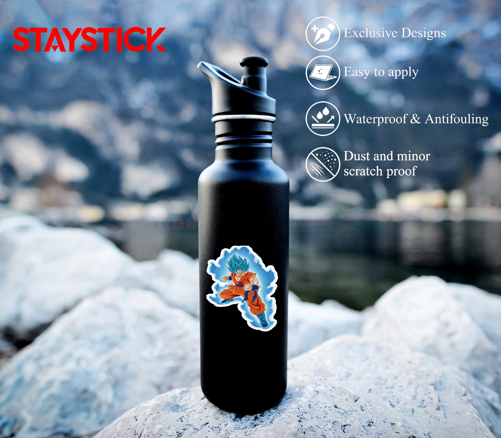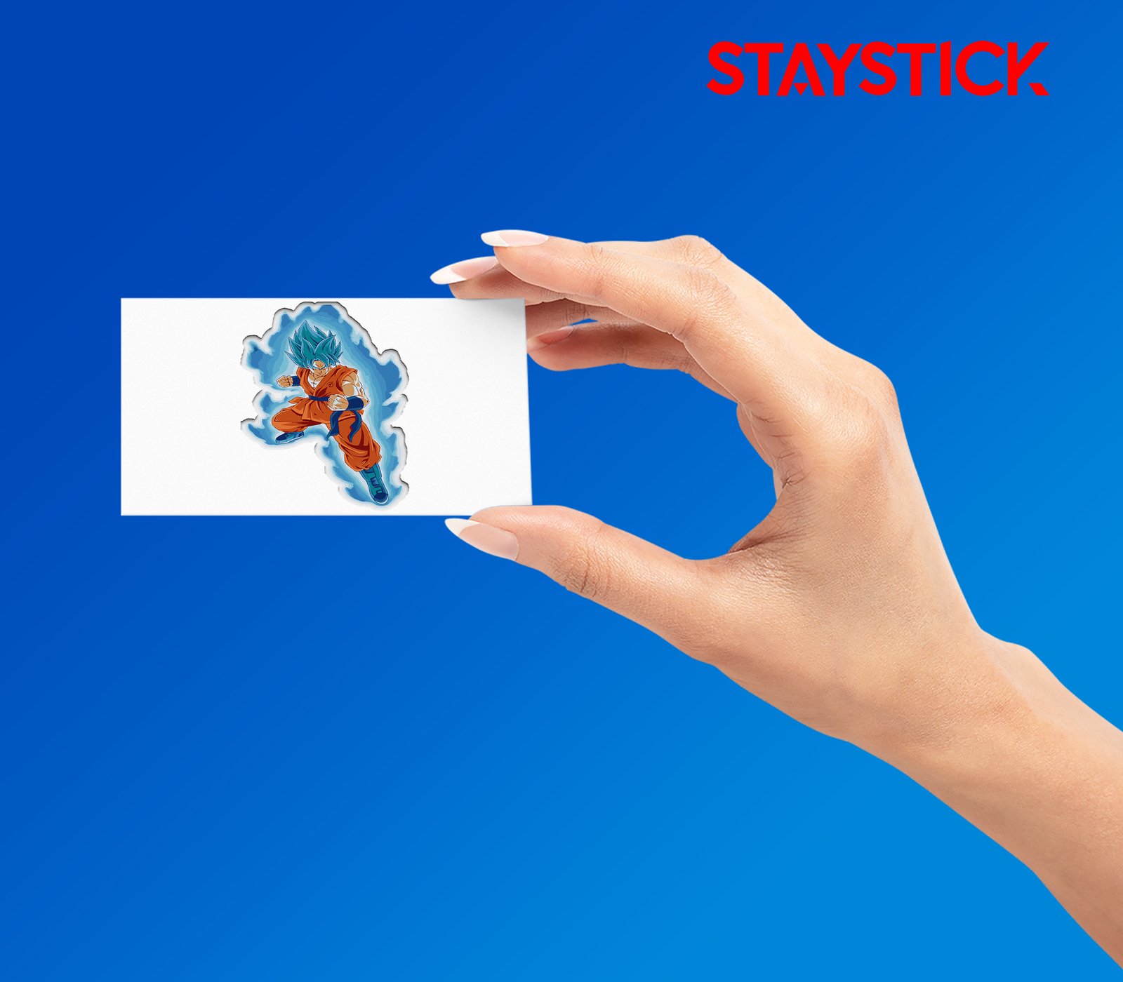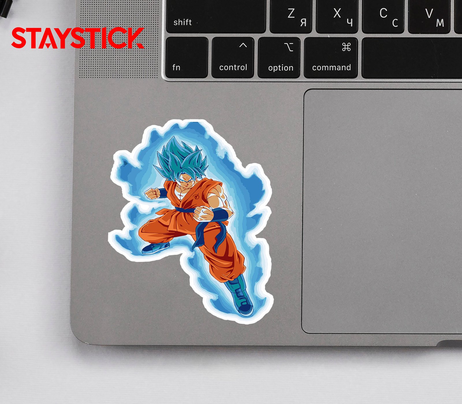 This amazing sticker showcases a legendary anime warrior in his ultimate transformed state, radiating an intense blue aura that signifies immense power and energy. Dressed in his iconic orange gi with a determined expression and clenched fists, he exudes an aura of focus, resilience, and readiness for battle. The vibrant blue hair and glowing energy waves surrounding him highlight his transformation into a higher level of strength, symbolizing perseverance, courage, and the relentless spirit of a fighter. Perfect for fans of epic anime battles, this sticker captures both the heroic essence and unstoppable energy of a true warrior.