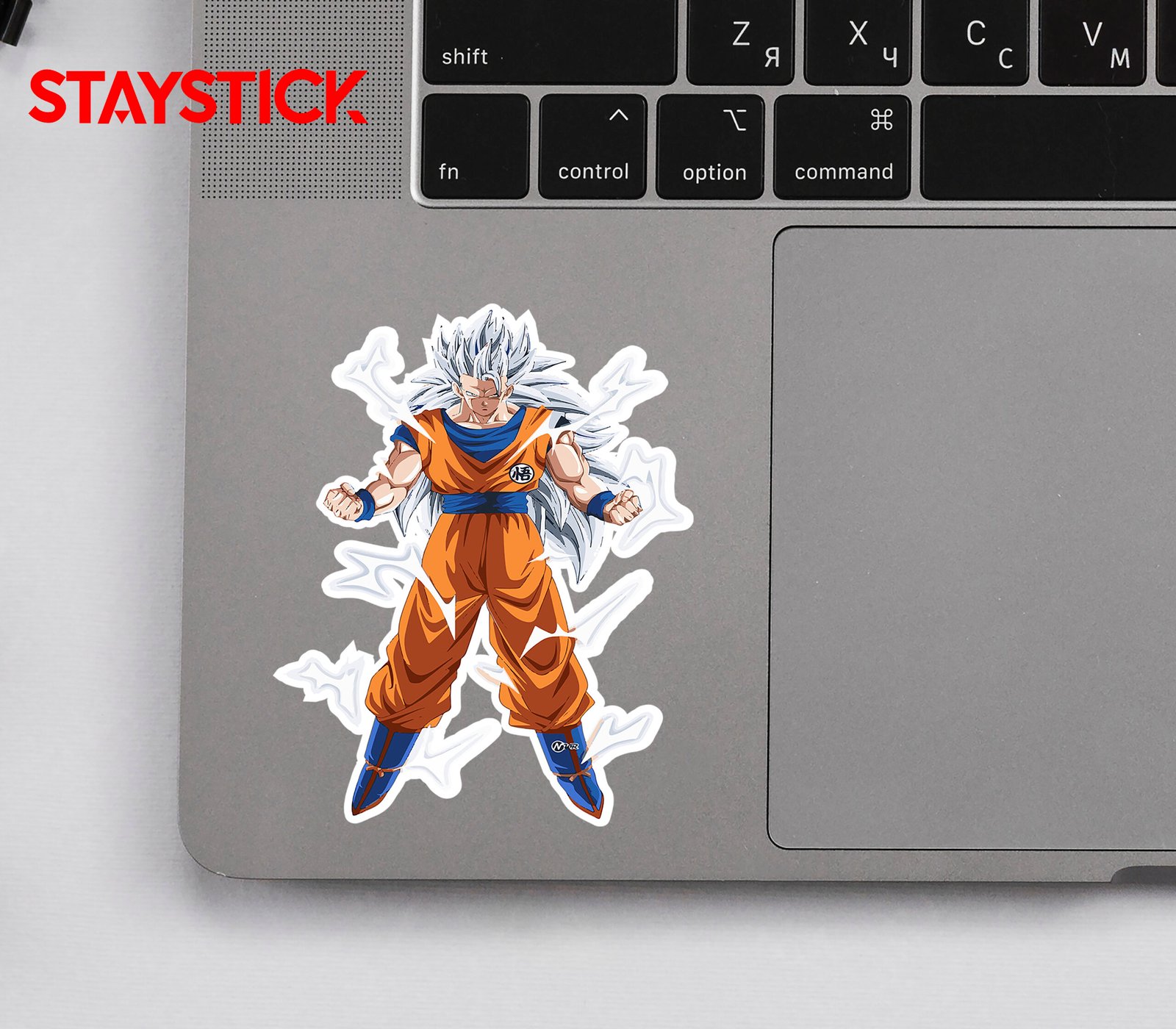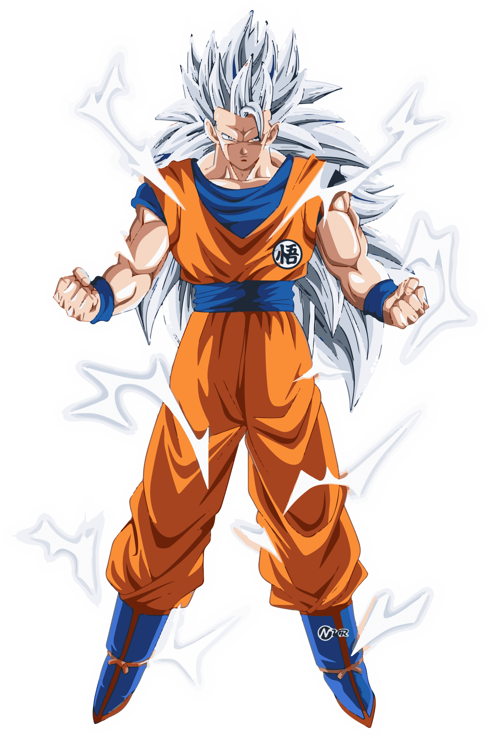 “This sticker showcases a legendary fighter in his ultimate form, radiating raw energy and unmatched power. With his spiked silver-white hair and glowing aura crackling around him, he stands tall in his iconic orange gi, exuding confidence and determination. His clenched fists and intense gaze reflect the spirit of a true warrior ready to face any challenge. The electrifying energy waves surrounding him bring the artwork to life, making this sticker a perfect symbol of strength, resilience, and the will to never give up.”