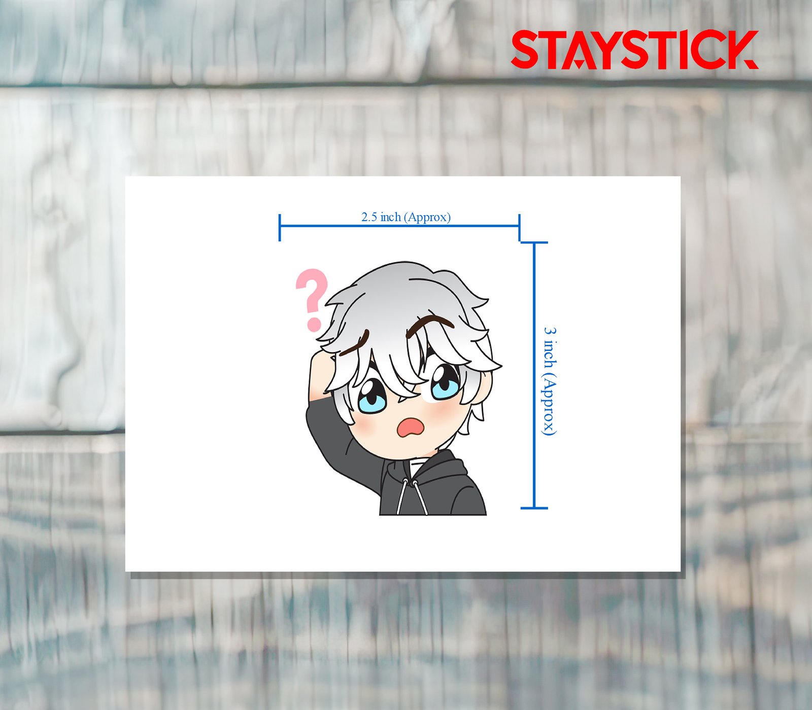 This amazing anime sticker features an adorable silver-haired character with big blue eyes, scratching their head in a puzzled manner while a pink question mark hovers above. Their slightly open mouth and raised eyebrows perfectly capture a moment of confusion, curiosity, or being unsure about what’s happening. Dressed casually in a dark hoodie, the character gives off a relatable and expressive vibe that makes the design both cute and fun. Ideal for expressing doubt, asking questions, or showing moments of “Wait, what?”, this sticker adds a playful yet charming touch to conversations, journals, or decorations, making it a versatile piece full of personality and emotion.