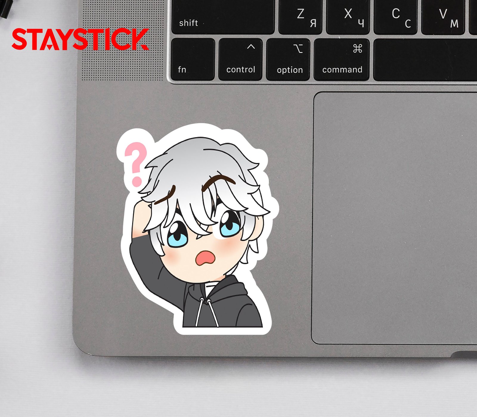 This amazing anime sticker features an adorable silver-haired character with big blue eyes, scratching their head in a puzzled manner while a pink question mark hovers above. Their slightly open mouth and raised eyebrows perfectly capture a moment of confusion, curiosity, or being unsure about what’s happening. Dressed casually in a dark hoodie, the character gives off a relatable and expressive vibe that makes the design both cute and fun. Ideal for expressing doubt, asking questions, or showing moments of “Wait, what?”, this sticker adds a playful yet charming touch to conversations, journals, or decorations, making it a versatile piece full of personality and emotion.