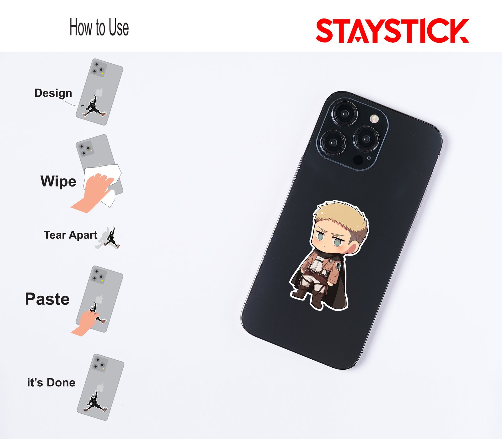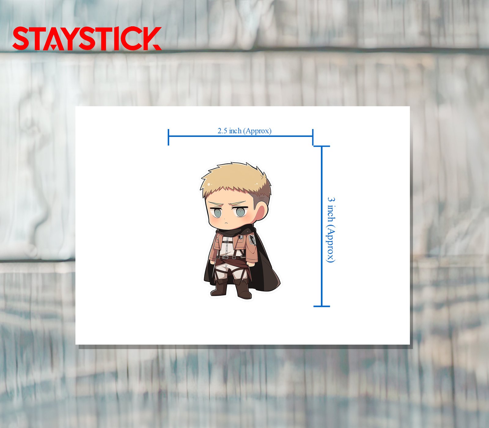 Playful yet detailed character decal combining kawaii proportions with realistic costume details. Textured folds, belt hardware, and precise insignia give the piece authenticity, while the rounded head and tiny limbs keep it adorable—ideal for fandom stickers, planner sets, or pin artwork.