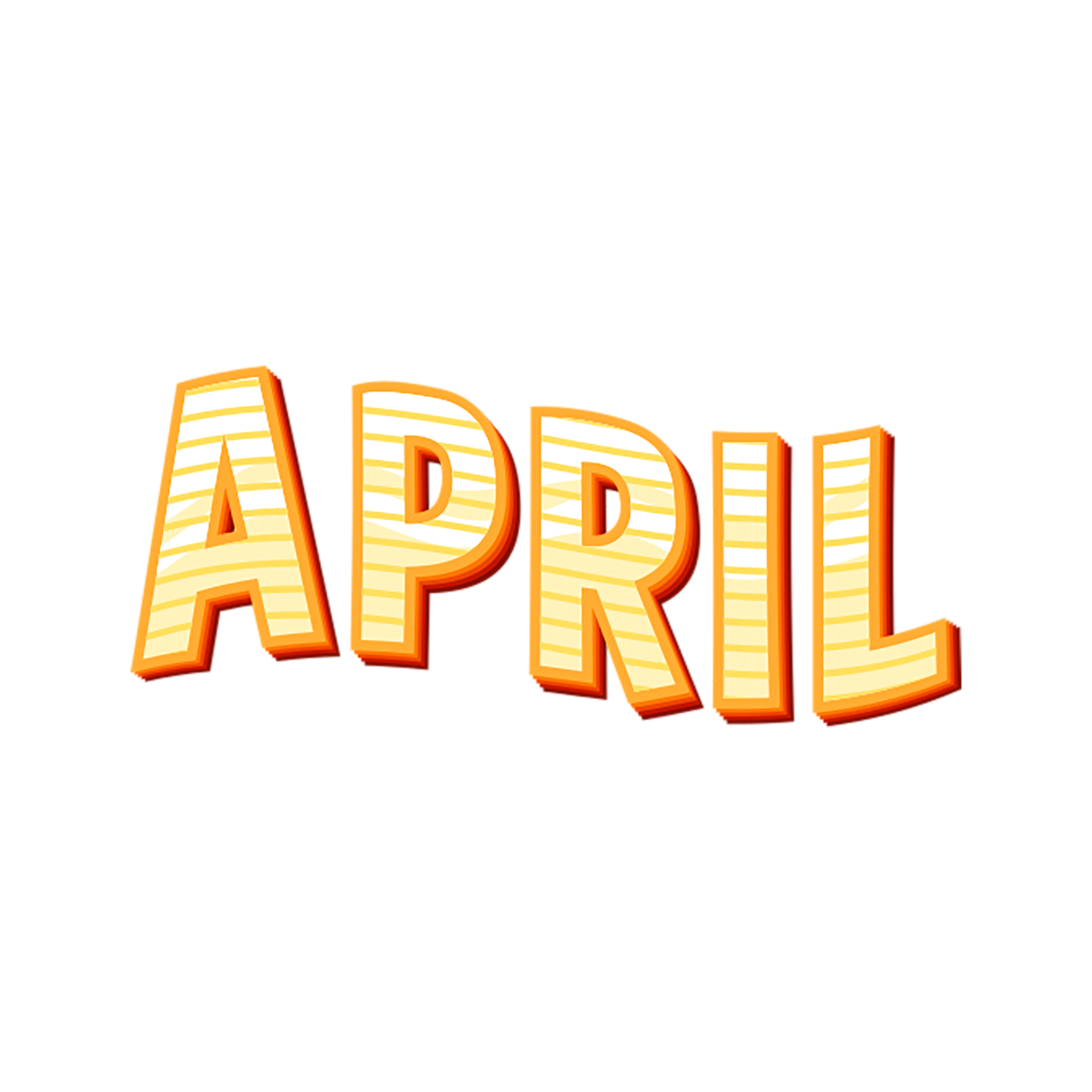 This eye-catching sticker features the word “APRIL” in a fun, energetic design. The letters are filled with light yellow stripes that give them a cheerful and sunny look, while the bold orange outline adds depth and contrast, making the text pop. The playful typography captures the lively and fresh spirit of April, often associated with spring, renewal, and joy. Perfect for planners, scrapbooks, calendars, or seasonal decorations, this sticker brings a burst of positivity and brightness wherever it’s placed.