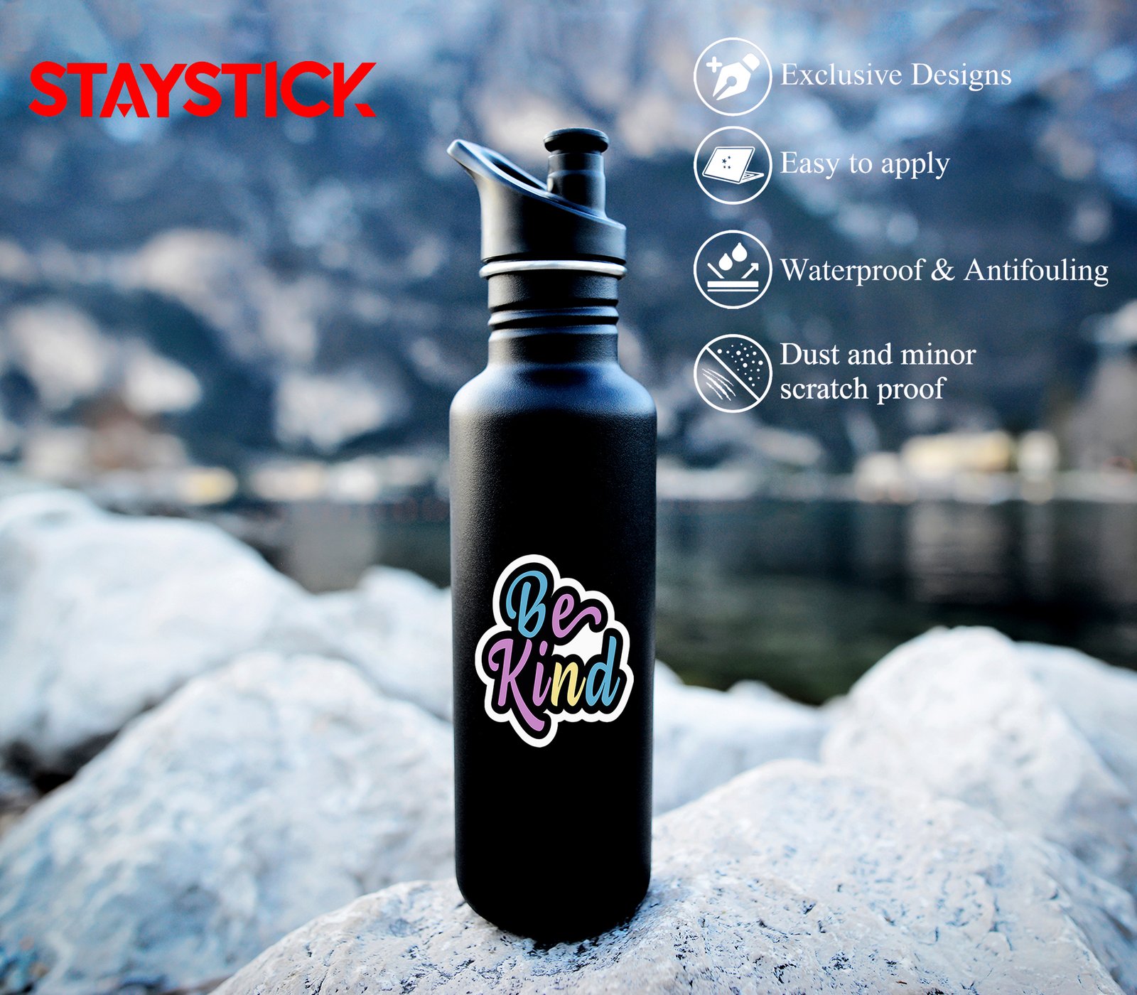 Durability: Suitable for indoor & outdoor use (laptops, water bottles, scooters, helmets, etc.