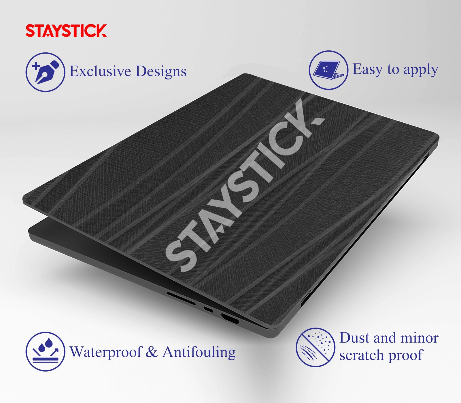 This minimalist dark laptop sticker is perfect for those who prefer understated elegance. Featuring flowing line textures that mimic natural wave movements, it enhances your device with a premium and sleek appearance. Easy to apply and remove without leaving residue, it combines functionality with aesthetics.Transform your laptop into a statement of style with this abstract wave-pattern laptop cover. Its smooth black finish with soft textured details brings a refined and modern aesthetic, making it ideal for professionals, students, and creatives alike. Along with protecting your device from scratches, it ensures a clean, stylish look anywhere you go.