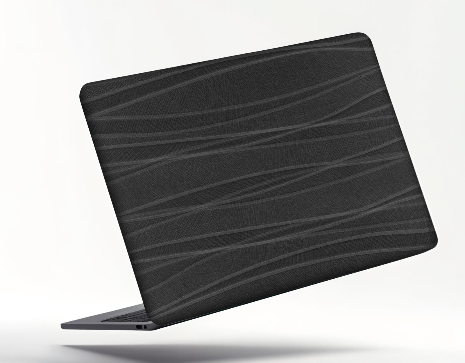 Sleek black laptop skin with subtle wave-like textures.Minimalist dark laptop sticker featuring flowingline patterns. Elegant matte black design with abstract wave details.