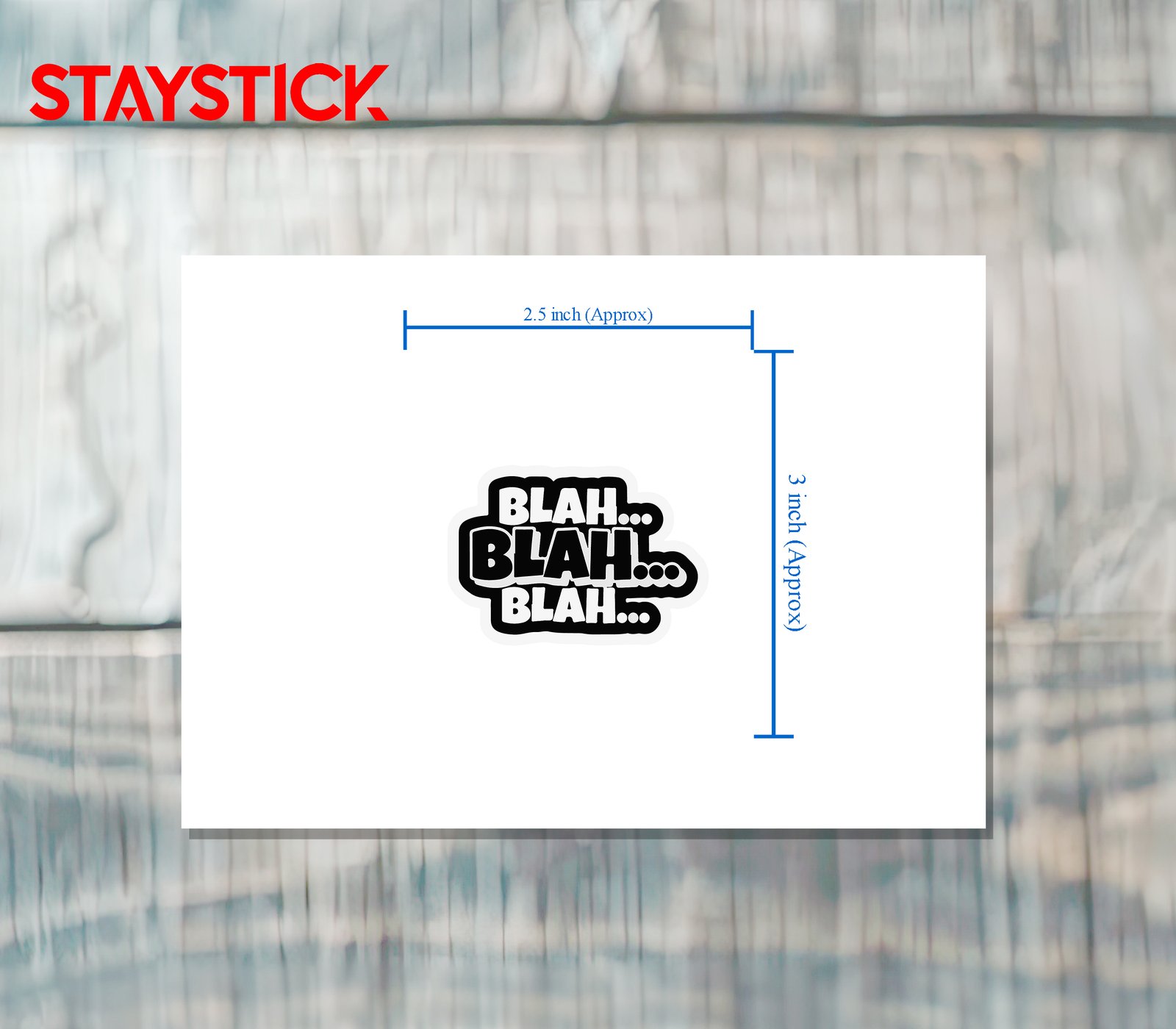Bold die-cut sticker: “BLAH… BLAH… BLAH…” stacked in chunky caps.