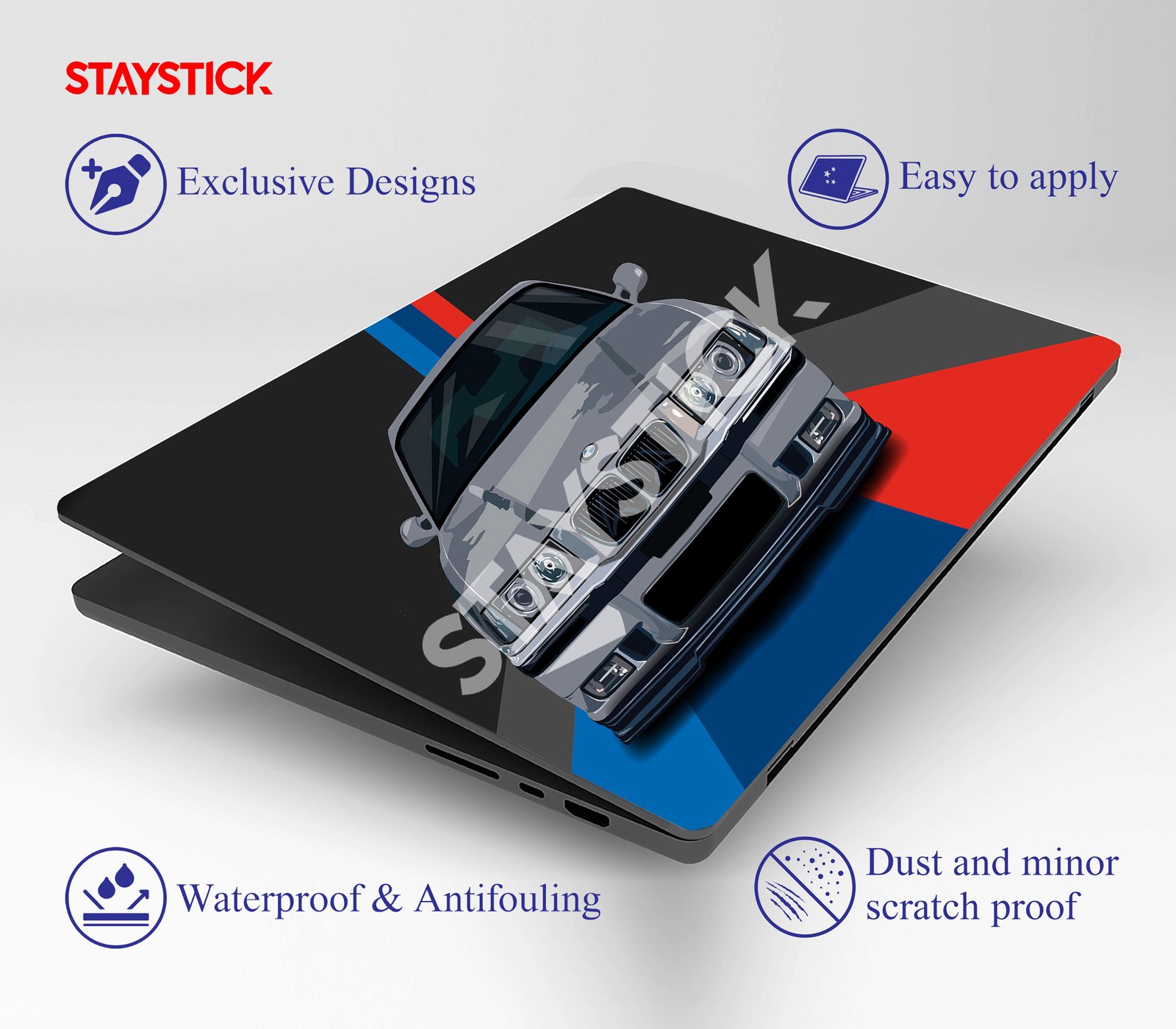 This automotive-inspired laptop skin is perfect for car enthusiasts and racing fans. With its dynamic color contrast and detailed car illustration, it gives your laptop a bold, modern look while keeping it safe from everyday wear and tear.Turn your laptop into a statement piece with this car-themed sticker, blending elegance and speed. The realistic car design and vibrant stripe accents make it ideal for students, professionals, and anyone who loves motorsport culture.