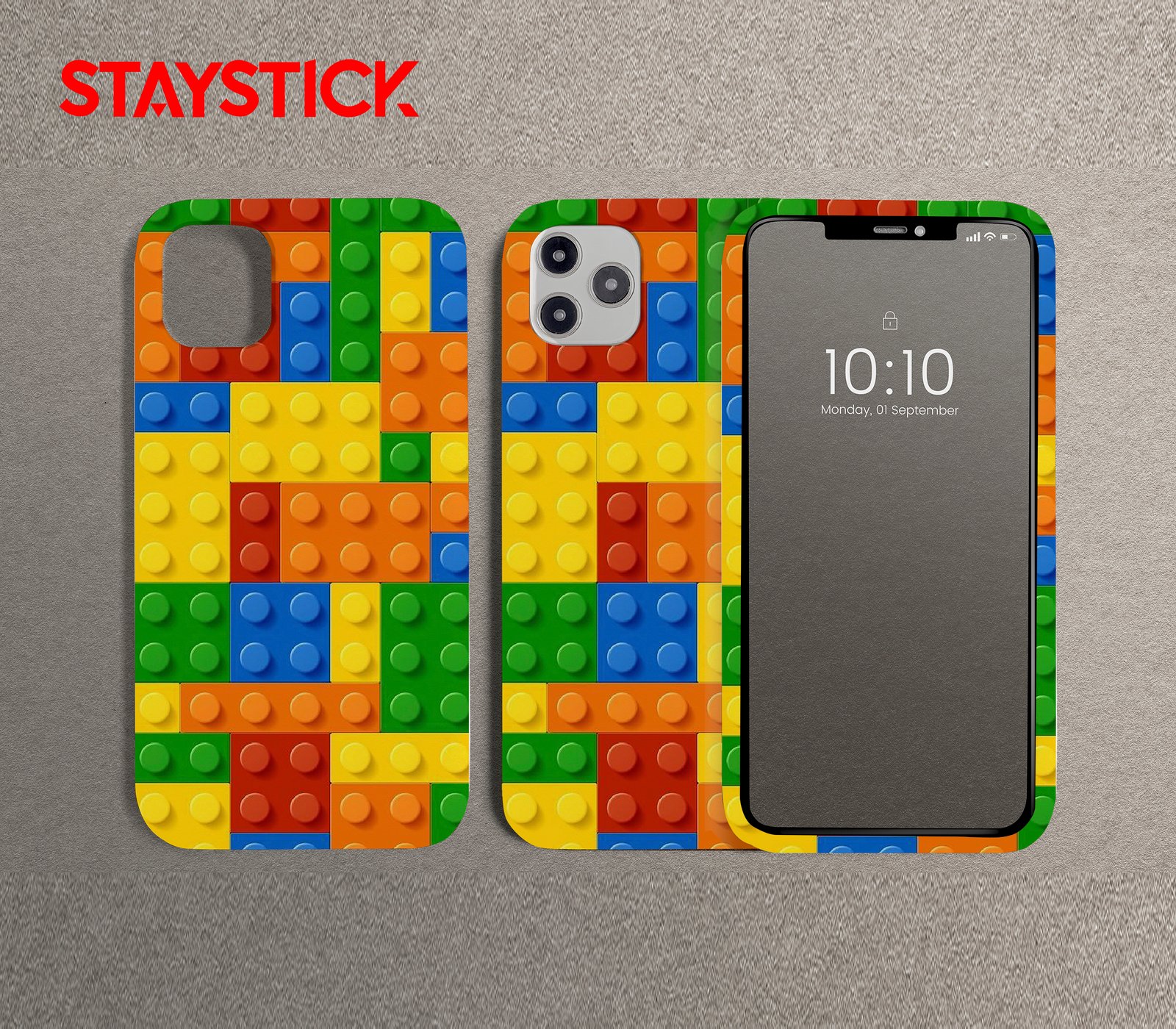 This design emphasizes bright color blocking and physicality: raised studs cast soft shadows, creating depth and a slight 3D effect while the saturated palette keeps the mood energetic and joyful. Use as a lock‑screen background, sticker for kids’ apps, or promotional art for toy stores; crop options include close‑up stud details or repeating tile patterns for larger surfaces.