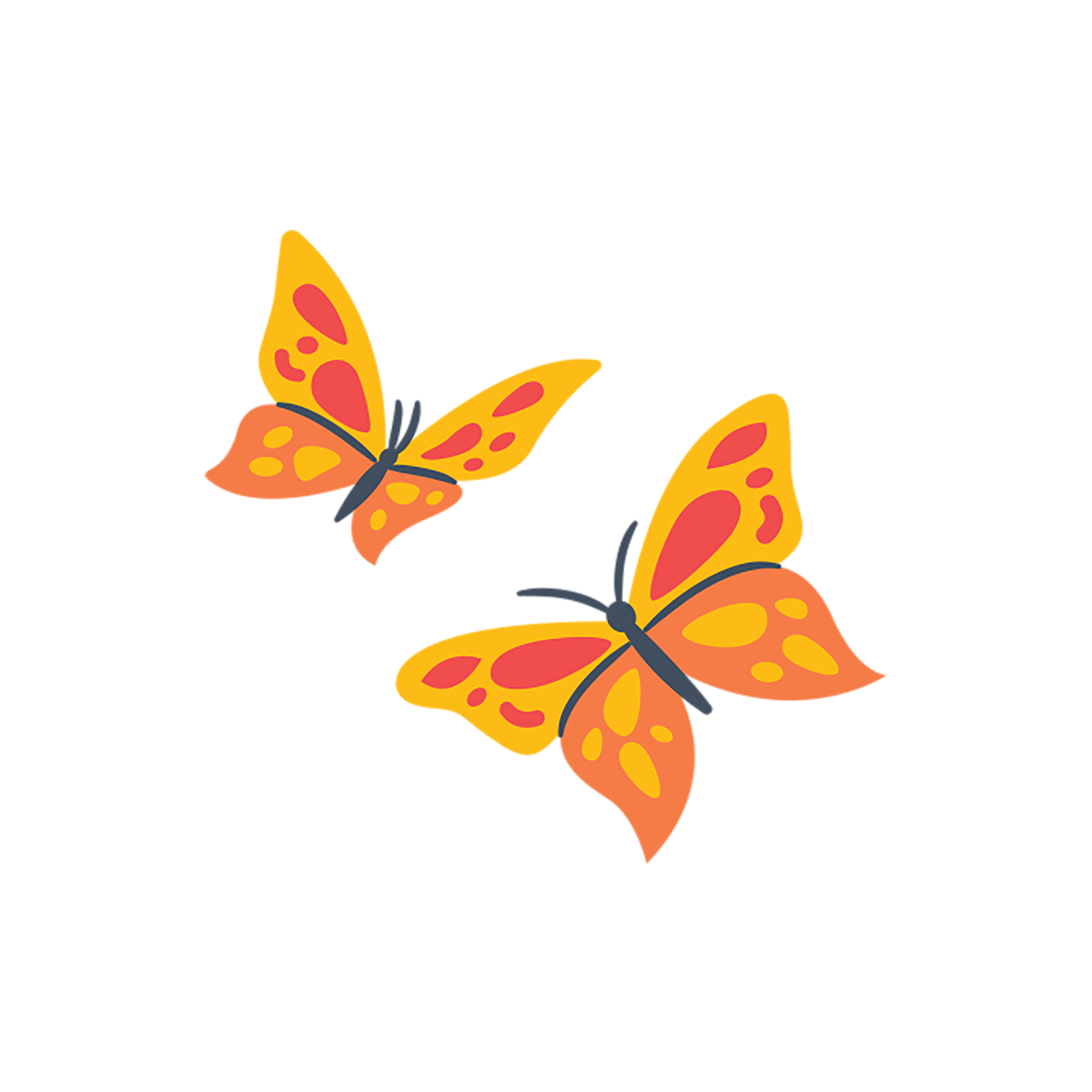 A charming sticker of two butterflies in flight, showcasing warm tones of orange, yellow, and red. Their graceful shapes and lively colors give a refreshing vibe, ideal for decorating notebooks, laptops, or messages with a hint of nature’s elegance.