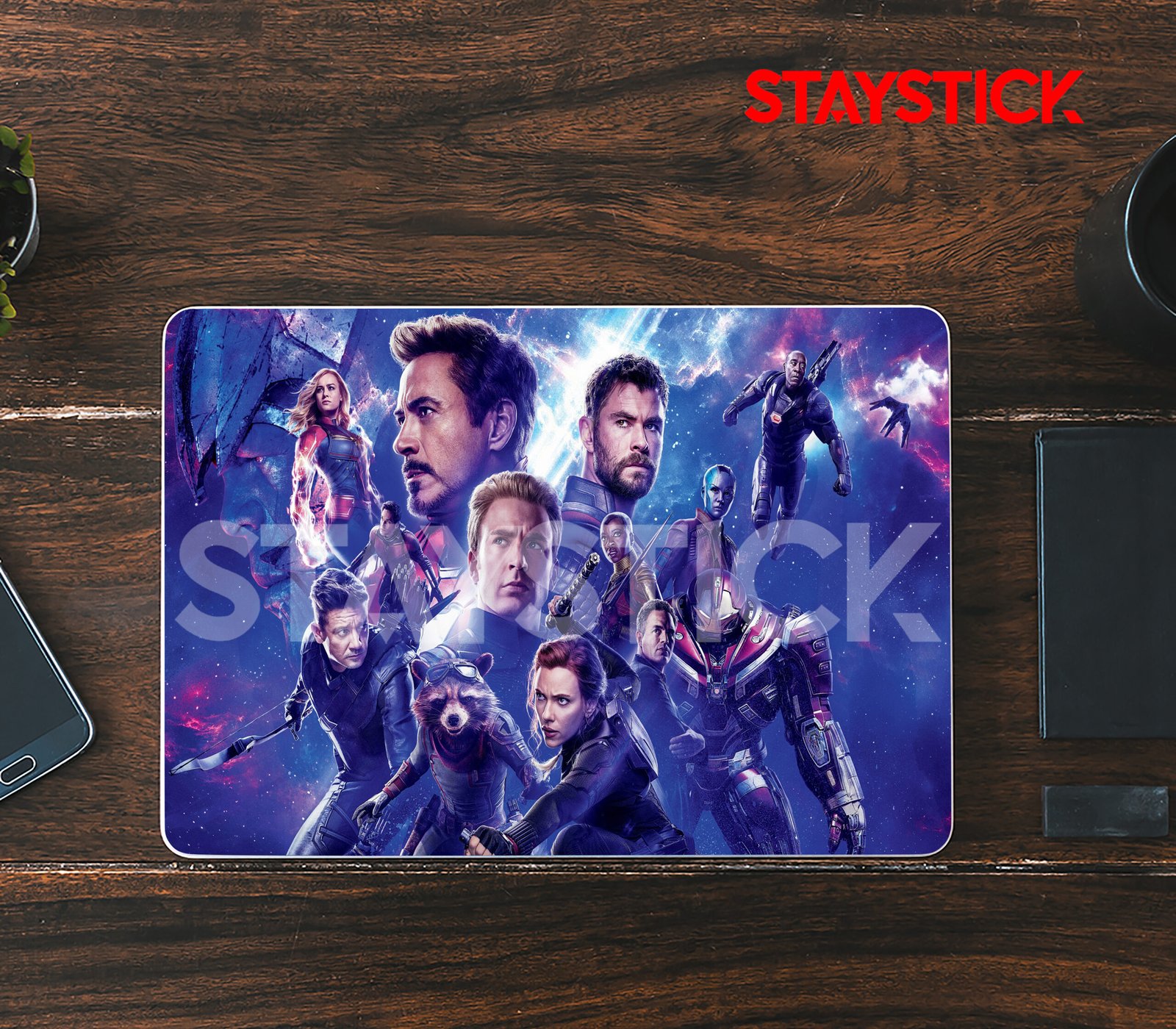 Avengers: Endgame laptop skin with a vibrant cosmic design featuring all your favorite superheroes. Durable, stylish, and perfect for Marvel fans.”