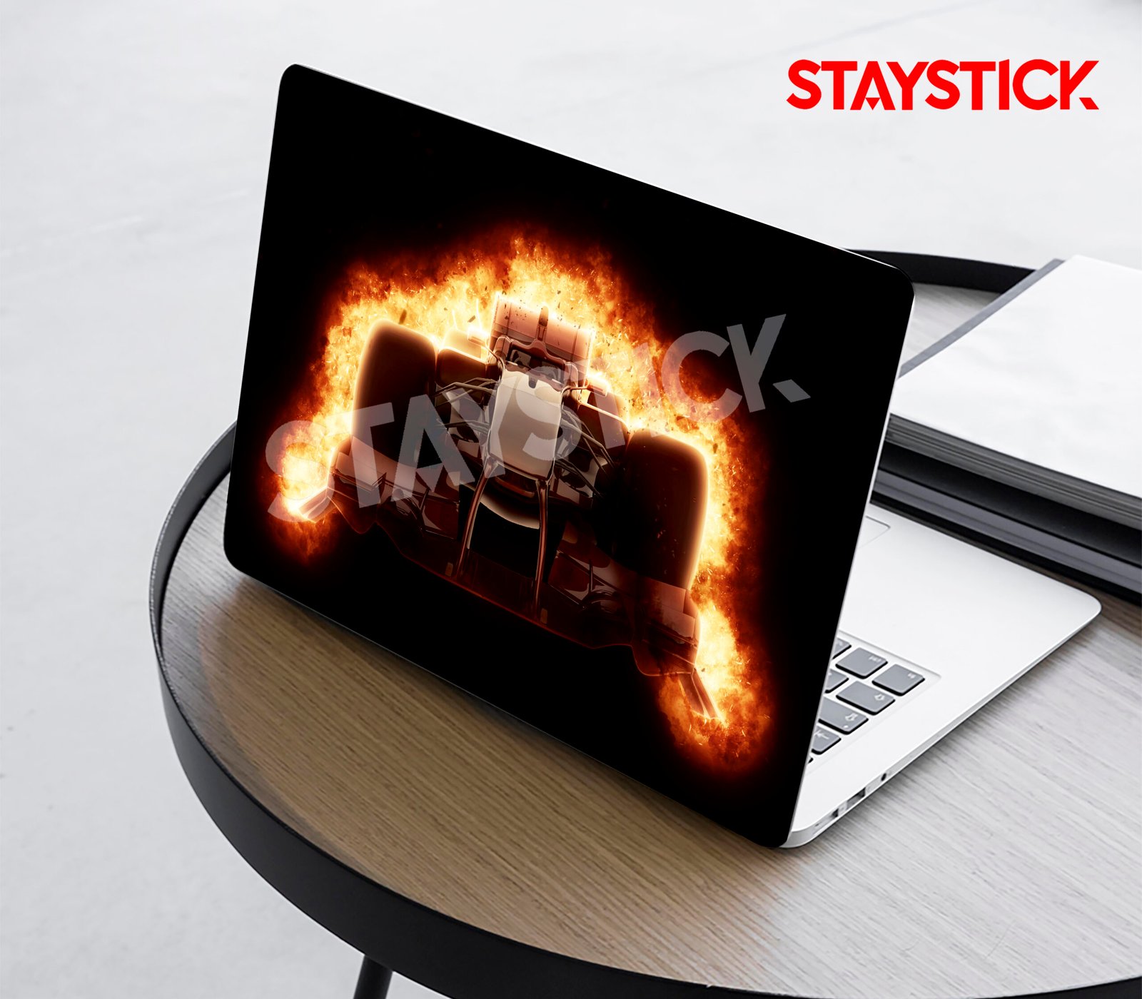 This laptop sticker skin features a blazing Formula 1 car bursting through flames, symbolizing speed, power, and passion. The fiery design creates a bold and energetic look, making your laptop stand out with a racing-inspired edge. Perfect for motorsport enthusiasts and adrenaline seekers, it adds a touch of intensity and style while protecting your device with flair.