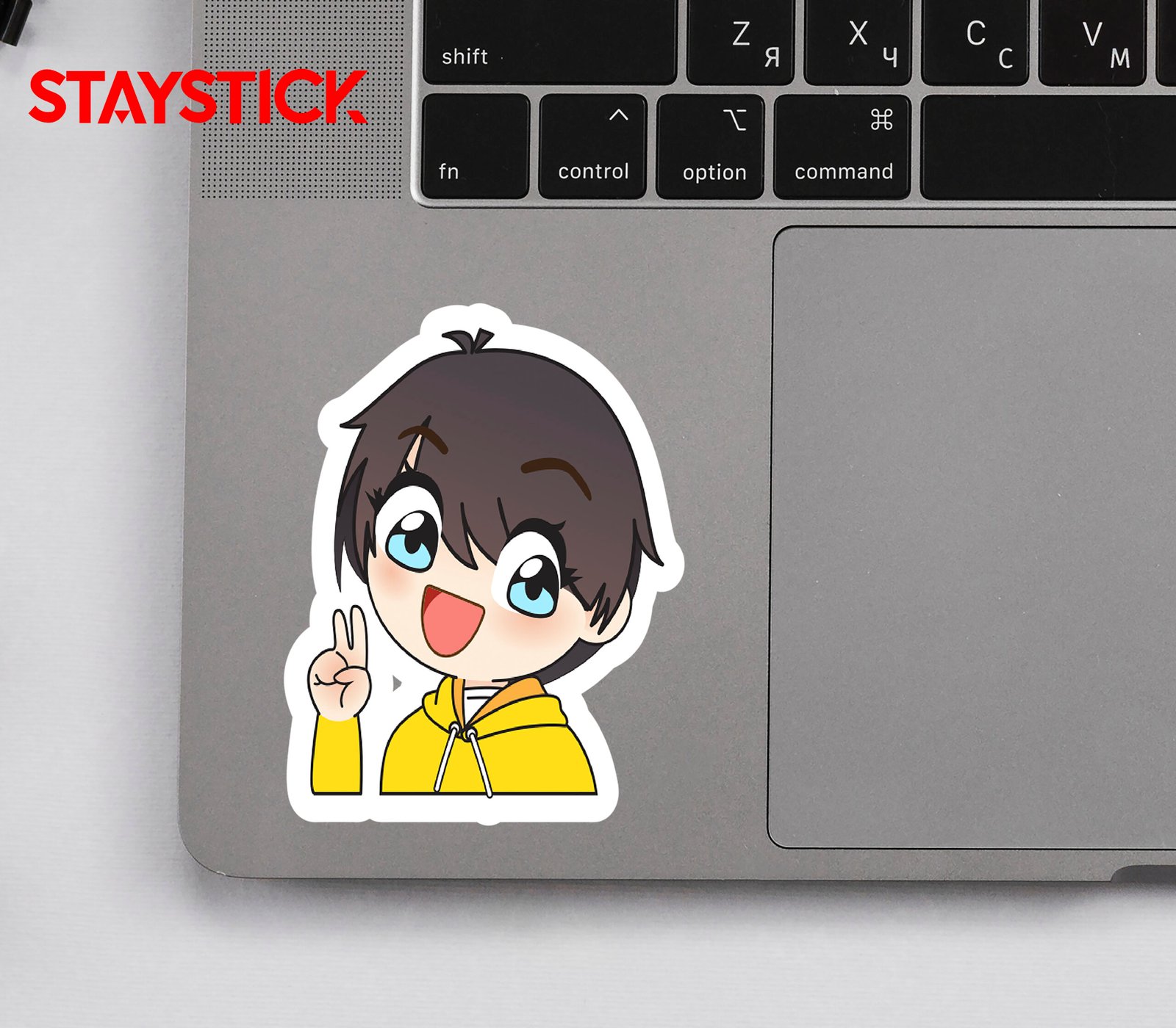 This delightful cartoon sticker features an adorable character with bright blue eyes, a wide cheerful smile, and rosy cheeks that radiate happiness. Dressed in a vibrant yellow hoodie, the character strikes a playful pose while flashing a peace sign, symbolizing positivity and friendliness. The expressive design captures a sense of joy, excitement, and carefree energy, making it perfect for conveying good vibes, encouragement, or simple cheerful greetings. Whether used in chats, journals, or as decoration on personal items like laptops, notebooks, or bottles, this sticker spreads happiness wherever it goes and adds a touch of fun, warmth, and positivity to any space.