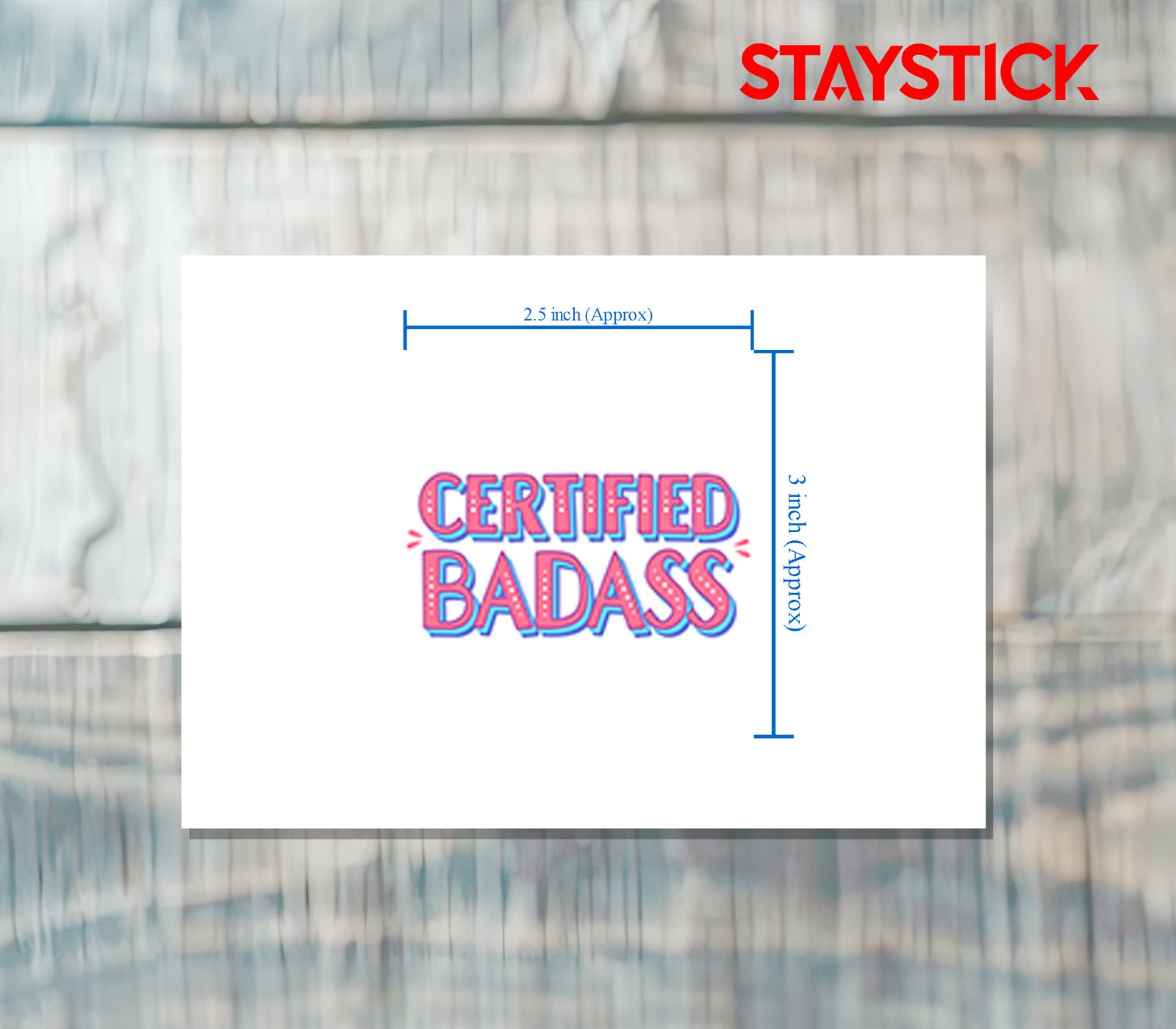 Show the world your unapologetic confidence with this eye-catching “Certified Badass” sticker. Designed with bold typography in striking pink and blue shades, this sticker brings together fun, sass, and motivation in one vibrant piece. It’s perfect for personalizing your laptop, journal, phone case, water bottle, or any surface where you want to make a statement. Durable and stylish, this sticker doesn’t just decorate—it reminds everyone that you’re strong, confident, and unstoppable.
