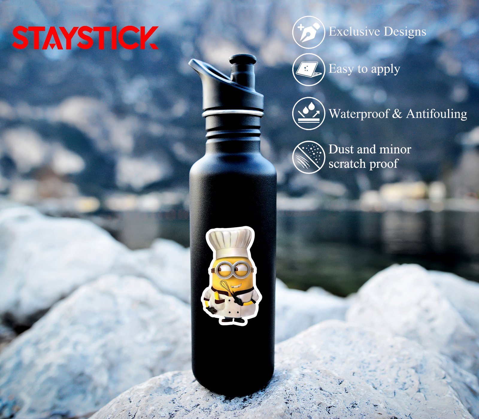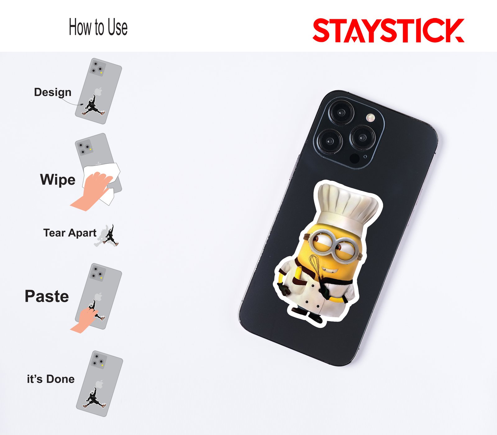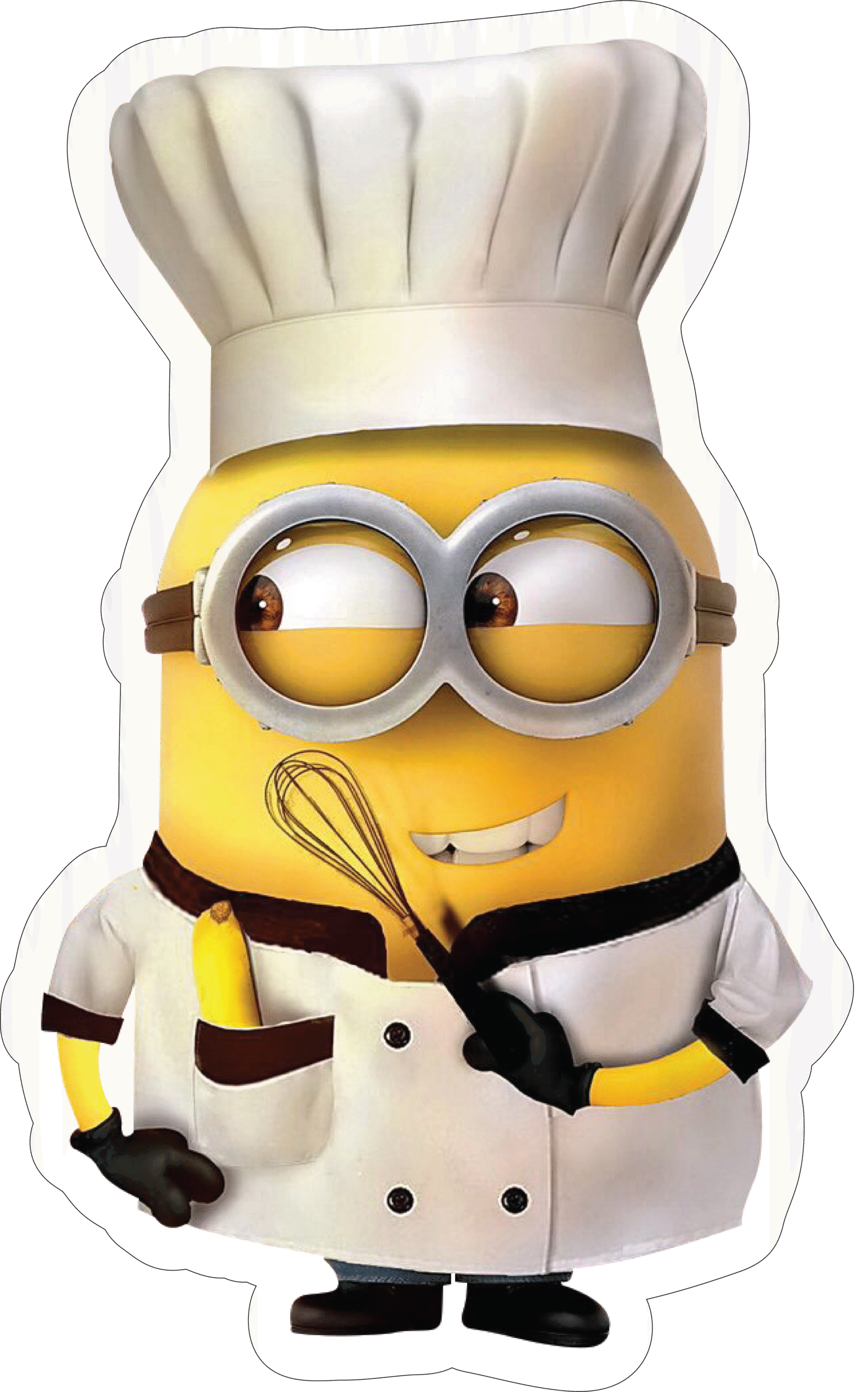 A fun, durable sticker featuring a Minion dressed as a chef, perfect for decorating.