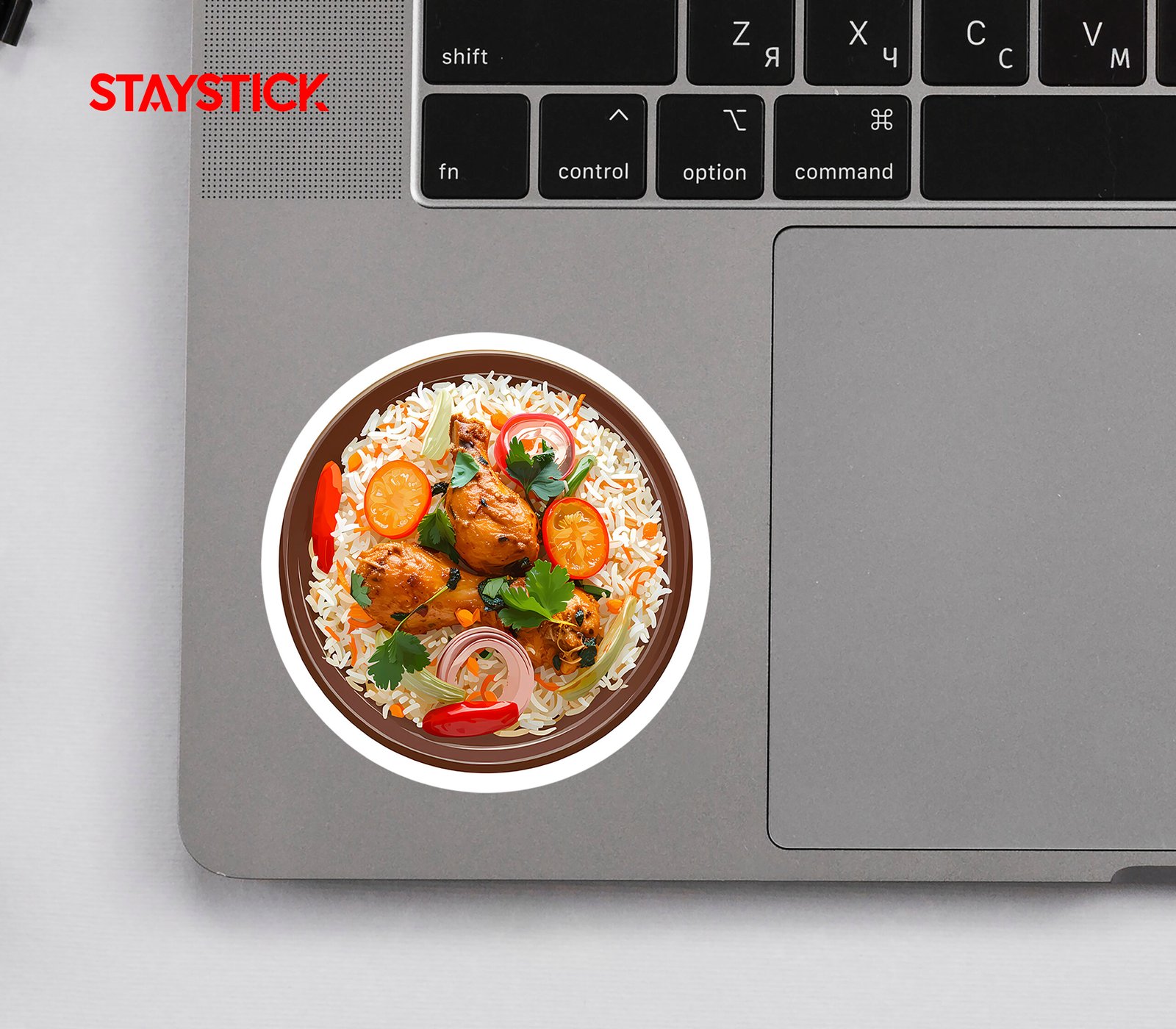 Delicious chicken biryani sticker, perfect for food lovers and decorating laptops or water bottles.