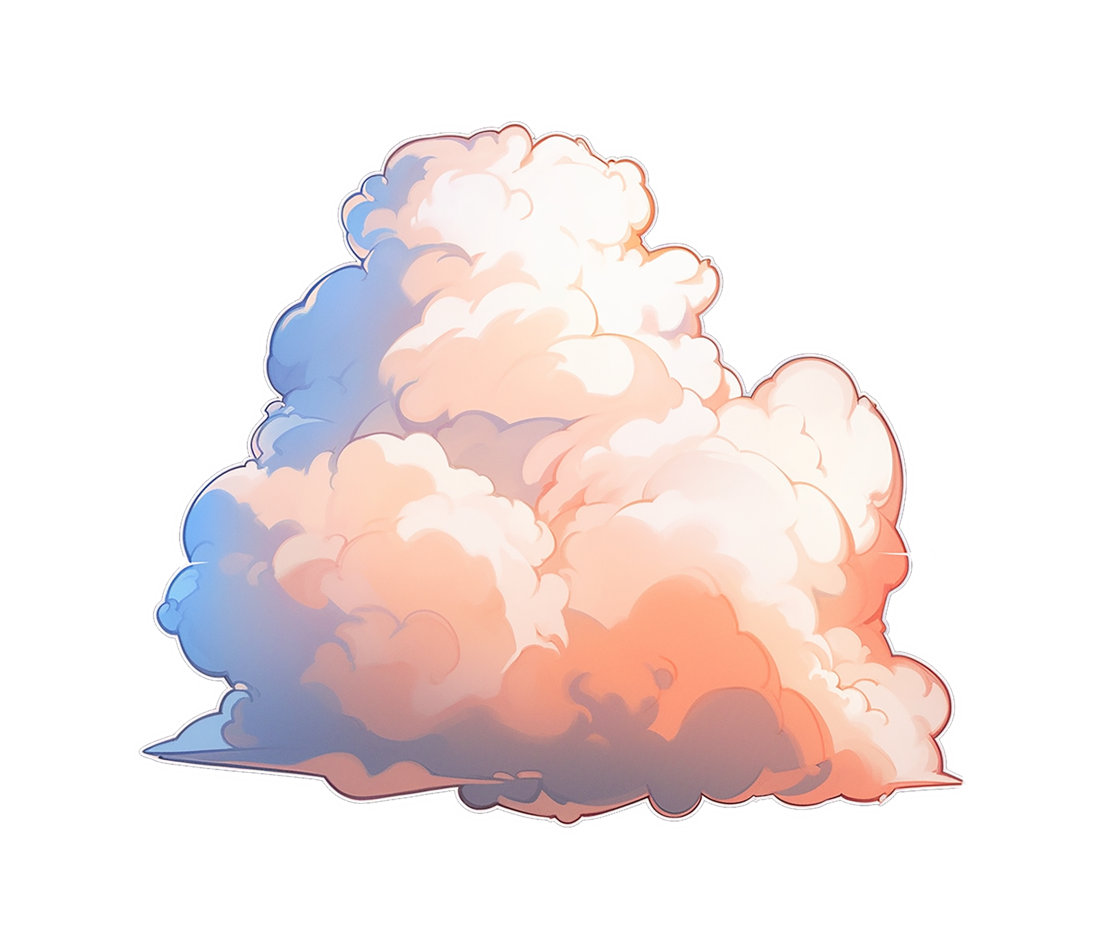 A soft, dreamy cloud sticker glowing with warm orange, pink, and blue sunset tones.