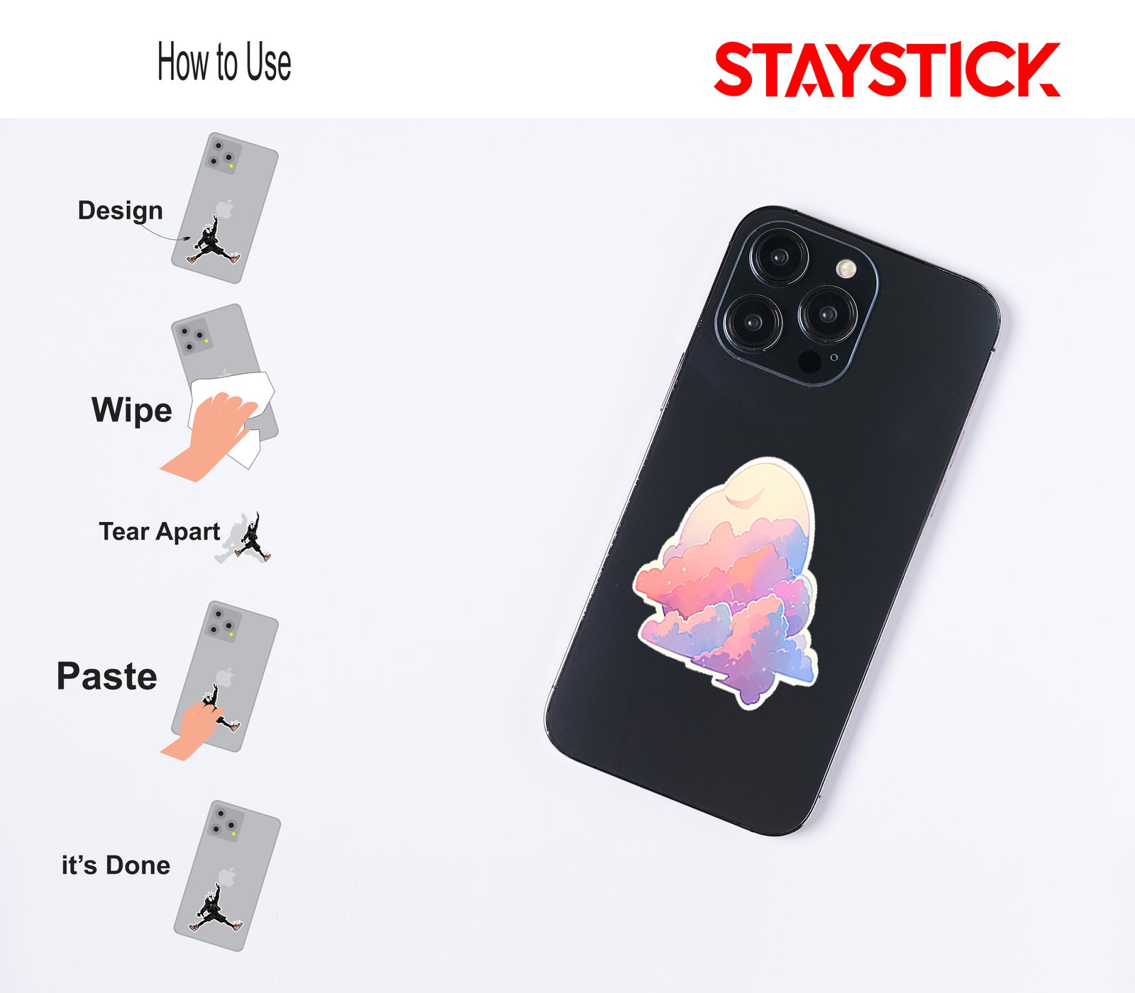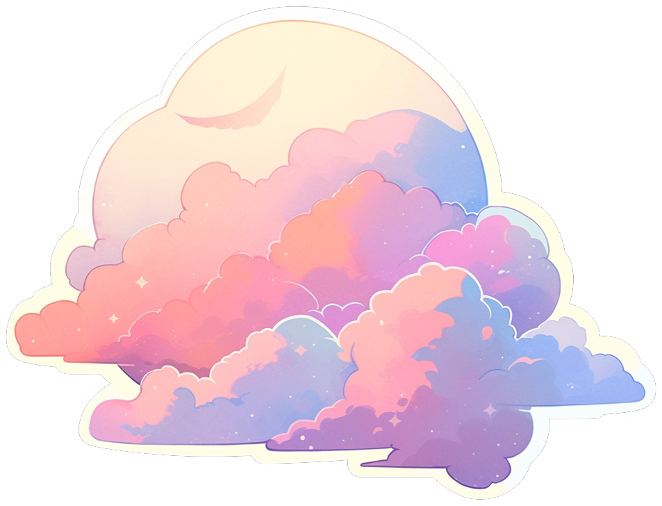 This enchanting sticker captures a serene and magical sky scene, where fluffy clouds are painted in delicate shades of pink, lavender, peach, and blue, blending together like a watercolor masterpiece. Above the clouds, a glowing moon peeks through, casting a gentle light that enhances the calming and ethereal atmosphere. Tiny sparkling stars add an extra touch of wonder, making this design feel both peaceful and otherworldly. Perfect for decorating journals, laptops, or phone cases, this sticker brings a sense of calm, imagination, and aesthetic beauty wherever it’s placed.
