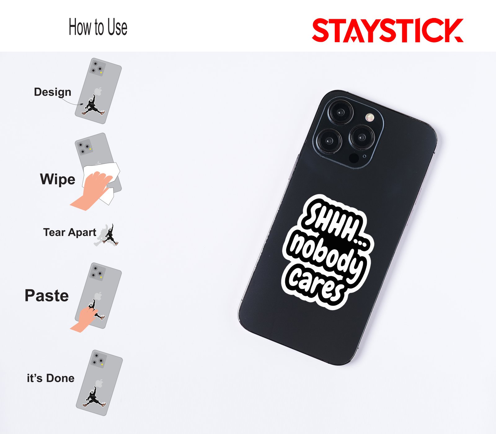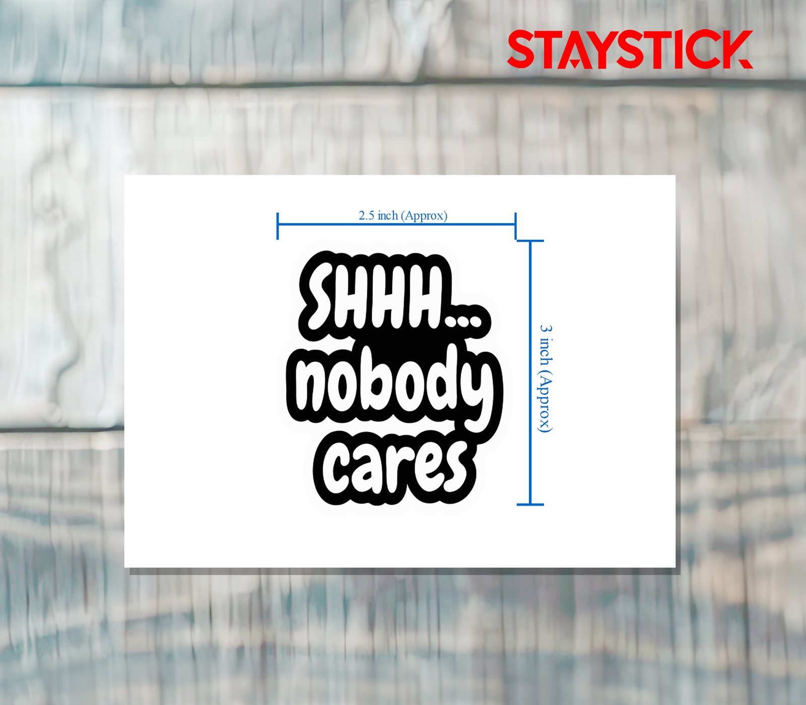 This sticker delivers the perfect mix of humor, sarcasm, and bold attitude. With the phrase “Shhh… nobody cares” in a playful yet striking font, it’s designed for those who love expressing their unbothered, carefree, and savage side. Whether you want to add a touch of sass to your laptop, water bottle, notebook, or phone case, this sticker makes a statement without you having to say a word. It’s ideal for shutting down unnecessary drama, showing your unshakable confidence, or simply spreading some funny, blunt truth. Durable and stylish, it’s not just a sticker—it’s an attitude.