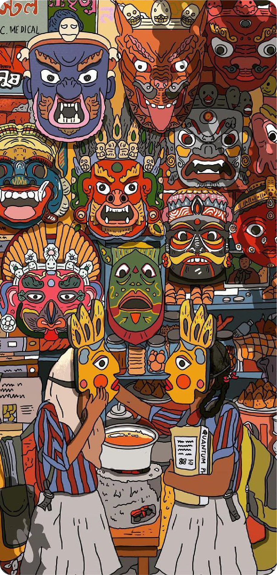 This panoramic artwork captures the chaotic charm of a medieval fair: layered stalls, performers, mythical beasts, and everyday townspeople interacting in humorous, story-rich moments. The composition is ideal for viewers who enjoy discovering Easter-egg details every time they look.