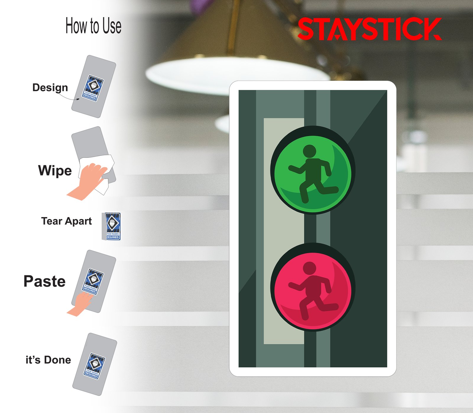 “Pedestrian crossing signal with red and green lights.Walk and don’t walk traffic light sticker.Sticker showing green walking man and red standing man.”