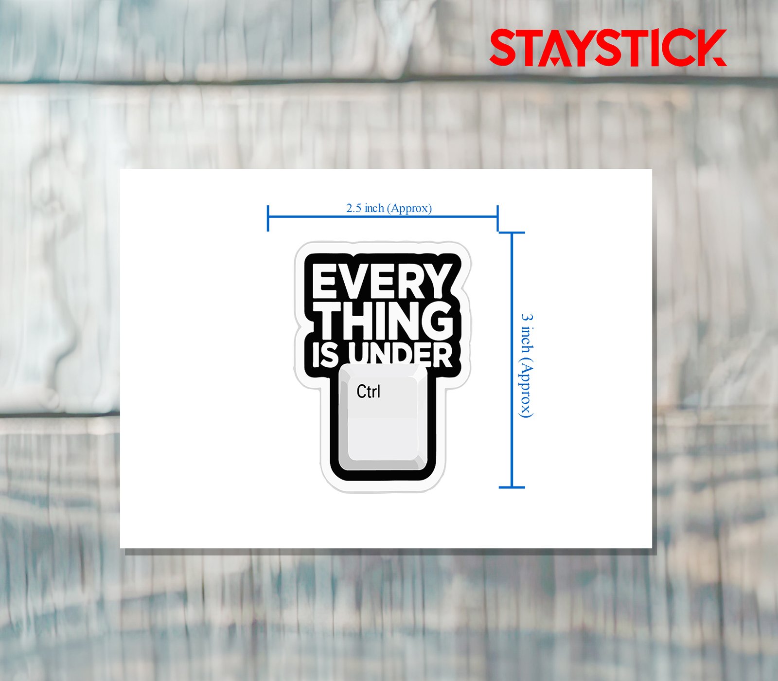 This sticker is a clever blend of humor and tech-inspired creativity. Featuring the phrase “Everything is under Ctrl” alongside the iconic keyboard Control (Ctrl) key, it playfully reassures that life, work, and even chaos are perfectly managed when you’ve got control. Designed with bold typography and a clean, modern look, it’s ideal for laptops, notebooks, water bottles, or any surface that could use a touch of geeky charm. Whether you’re a programmer, gamer, student, or someone who just loves witty wordplay, this sticker is a fun way to showcase your personality while keeping things “under Ctrl.”