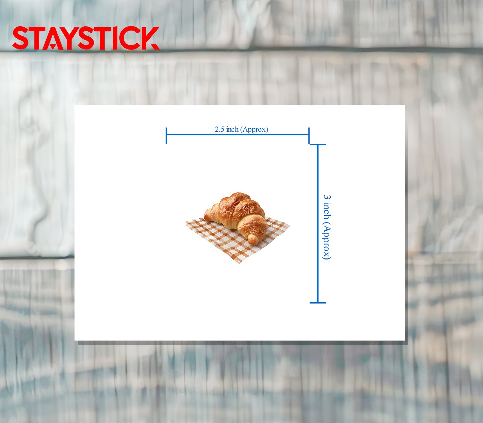 This high-quality sticker features a detailed illustration of a golden-brown, flaky croissant, sprinkled with sesame seeds, resting on a checkered tablecloth. Ideal for adding a touch of French bakery charm to your laptop, notebook, water bottle, or any smooth surface. A must-have for pastry enthusiasts and fans of food-themed stickers.