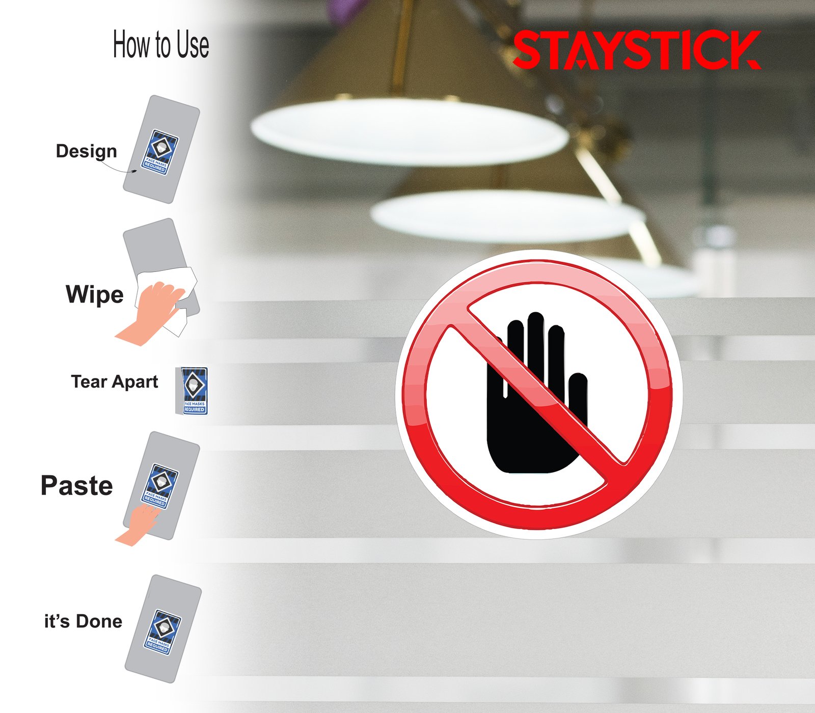“This sticker features a bold red prohibition circle with a diagonal line cutting across a black hand symbol, which is depicted in a raised ‘stop’ gesture. The strong contrast of red, black, and white ensures that the symbol is highly visible and easily understood.Often used in workplaces, construction zones, restricted areas, or hazardous locations, this sticker conveys a clear message of restricted entry. It warns individuals not to proceed beyond a certain point for safety, security, or privacy reasons. The design makes it universally recognizable, reducing risks of accidents or unauthorized access.”