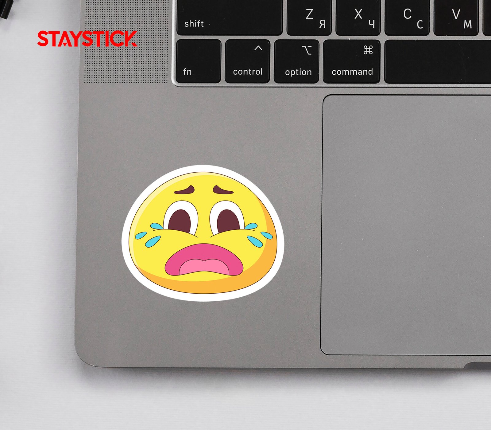This sticker features a bright yellow emoji with large, worried eyes, raised eyebrows, a wide open pink mouth, and blue tears falling down its cheeks — perfectly expressing sadness, panic, or an “oh no!” reaction. Its expressive face captures moments of worry, fear, or even dramatic cuteness, making it versatile for emotional decoration or reaction use. The smooth white border keeps the design clean and easy to place on laptops, phones, notebooks, or water bottles, adding a fun, expressive touch wherever it’s applied. Great for anyone who loves emojis that communicate feelings in a playful, adorable way.