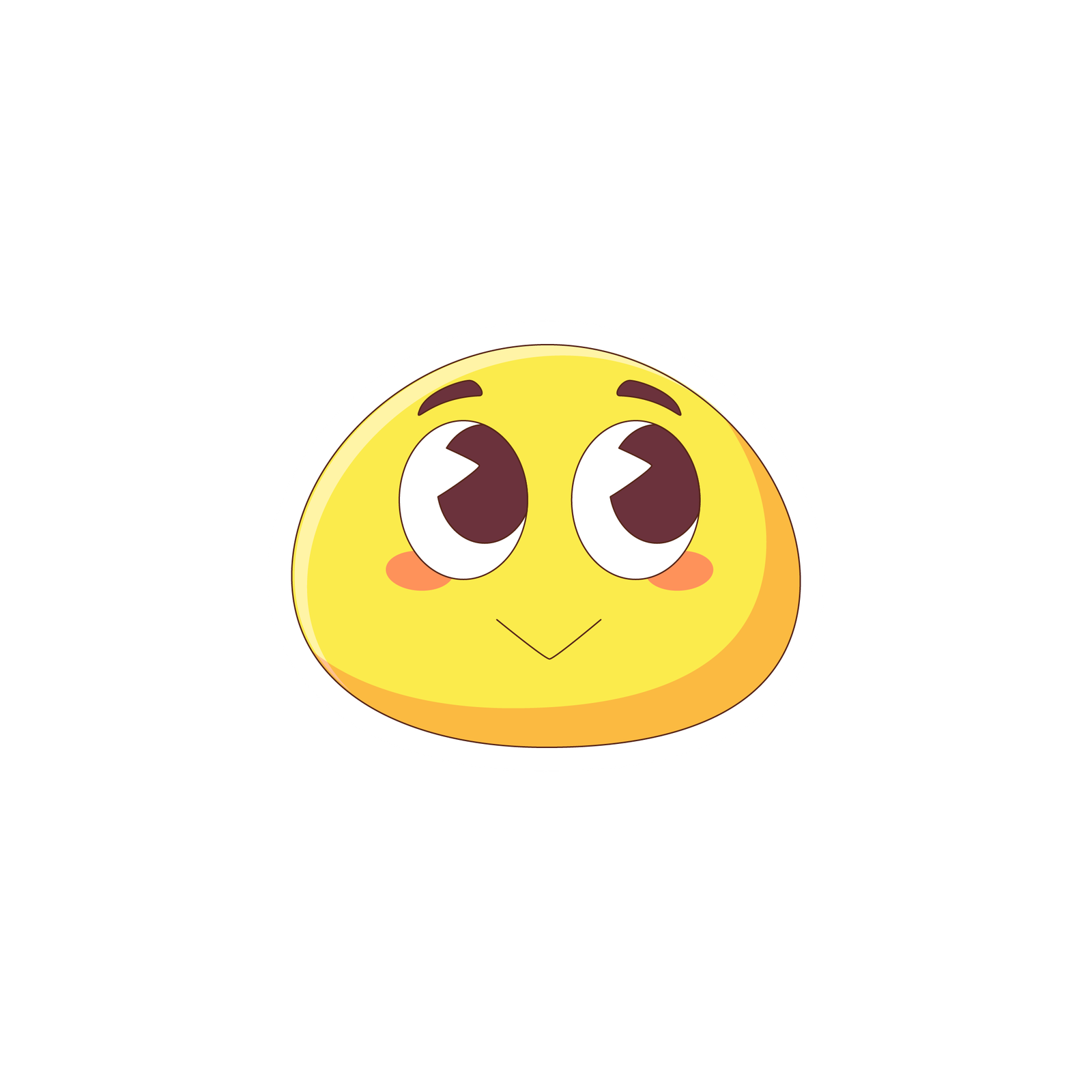 This sticker showcases an adorable, round yellow emoji with large, sparkling eyes, blushing cheeks, and a soft, shy smile that radiates warmth and innocence. Its charming expression makes it perfect for conveying feelings of joy, admiration, or pure delight in a sweet, playful way. The clean white border ensures it stands out beautifully on laptops, phone cases, notebooks, water bottles, or anywhere you want to add a touch of cheerful personality. Ideal for emoji lovers, mood stickers, or anyone who enjoys sharing cute, positive vibes.