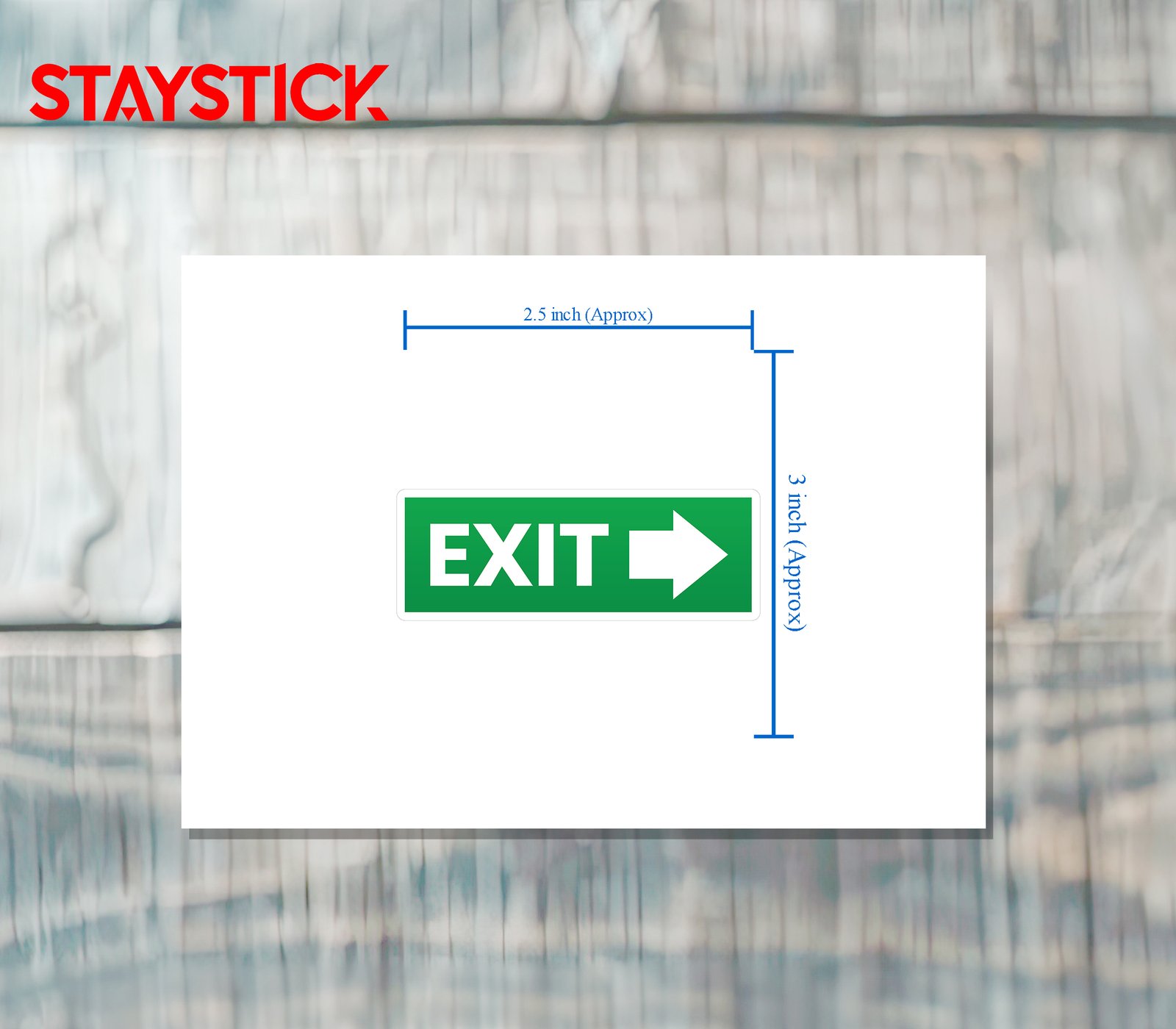 “This sticker depicts a green rectangular emergency exit sign with the word ‘EXIT’ in bold white letters and an arrow pointing to the right. It is designed to guide people toward the nearest safe exit route during emergencies.Widely used in buildings, workplaces, and public spaces, this exit sign sticker symbolizes safety and direction. Its clear and bold design ensures visibility in critical situations, helping individuals quickly locate escape routes during fires, power outages, or other emergencies.”