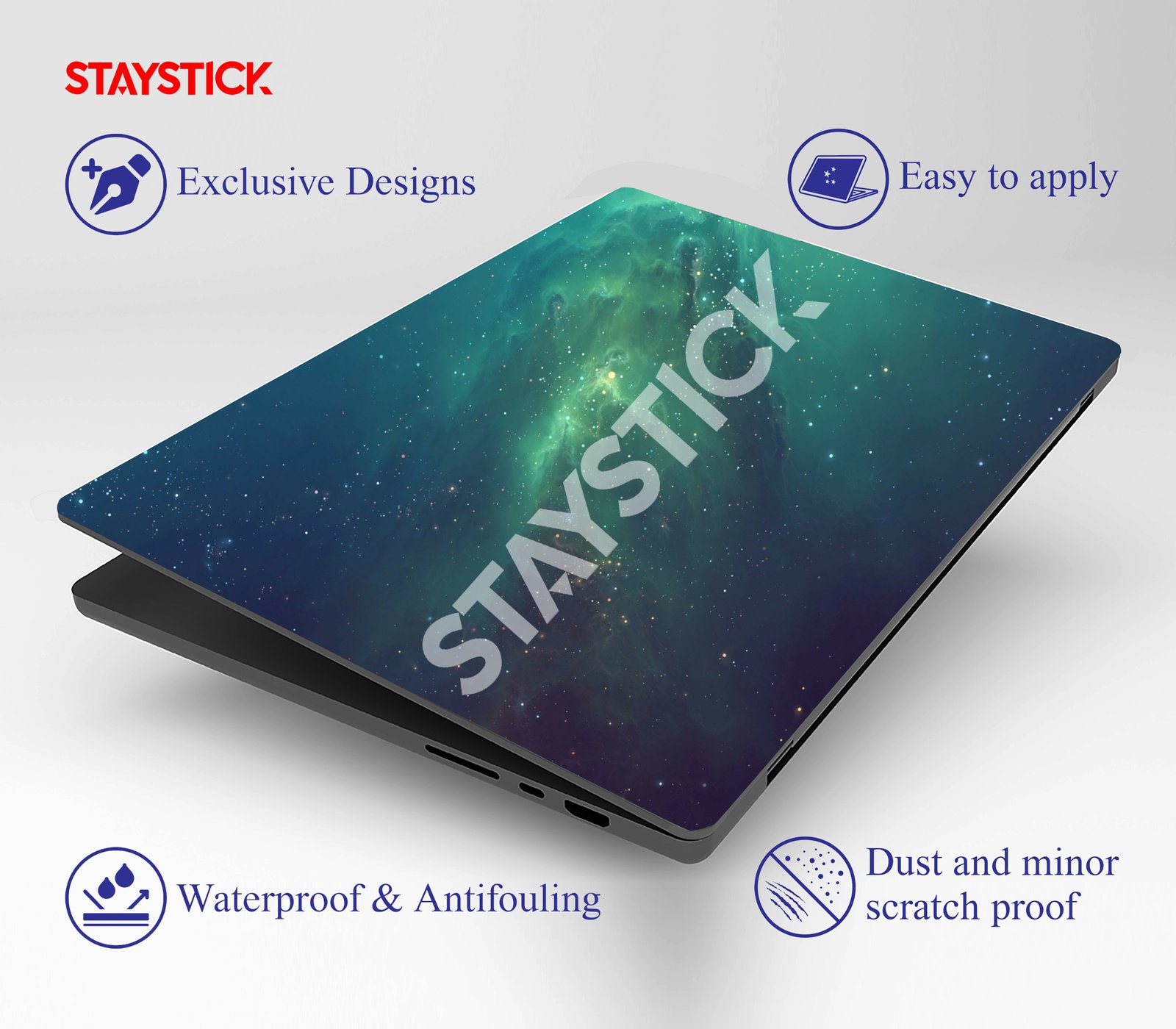 Bring the beauty of the universe to your laptop with this stunning nebula-inspired skin sticker. Featuring a breathtaking cosmic design in rich shades of teal, blue, and purple, it creates a striking visual effect that instantly transforms the look of your device. Made from high-quality, durable vinyl material, this laptop skin offers excellent protection against scratches, smudges, and minor everyday wear while maintaining a slim and sleek appearance. The precise fit ensures an easy, bubble-free application and can be removed without leaving any sticky residue. Perfect for students, professionals, and space enthusiasts, this nebula laptop sticker adds a touch of elegance, creativity, and cosmic energy to your everyday tech.