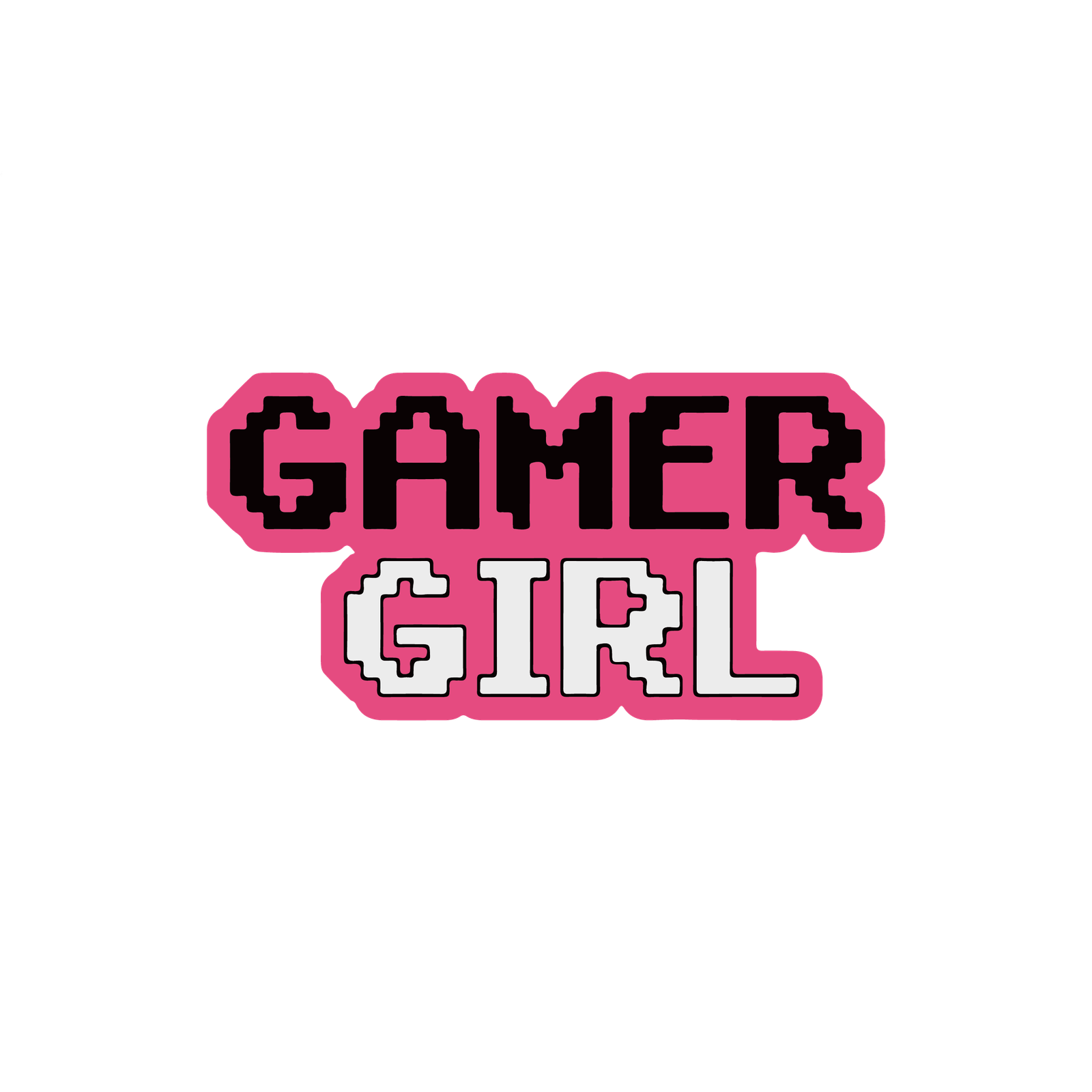 Level up your style with this vibrant Gamer Girl sticker, designed for gamers who love to show off their passion. Featuring a bold, retro pixel font, the design perfectly blends nostalgia with modern charm. The word “GAMER” stands out in sleek black with a pink outline, while “GIRL” pops in white with the same bright border, creating a fun contrast that catches the eye instantly.