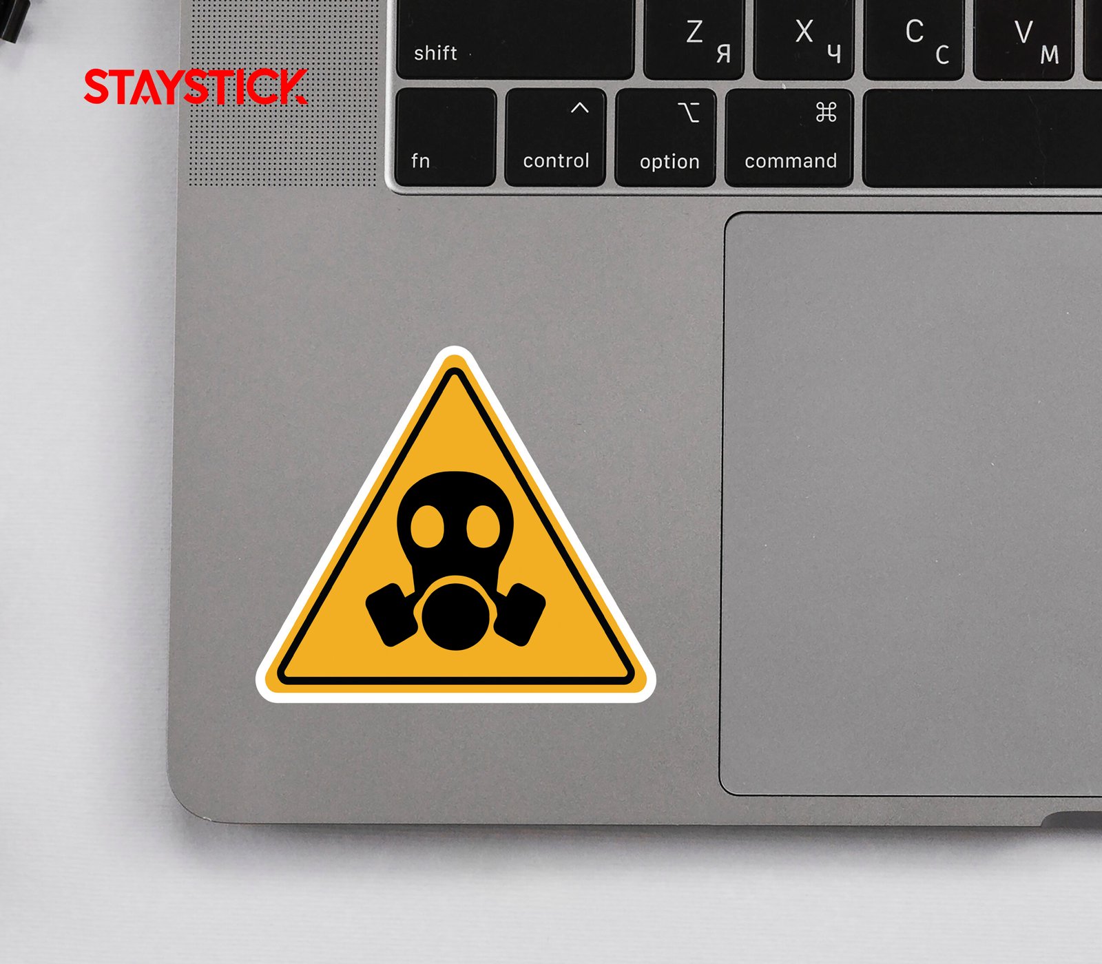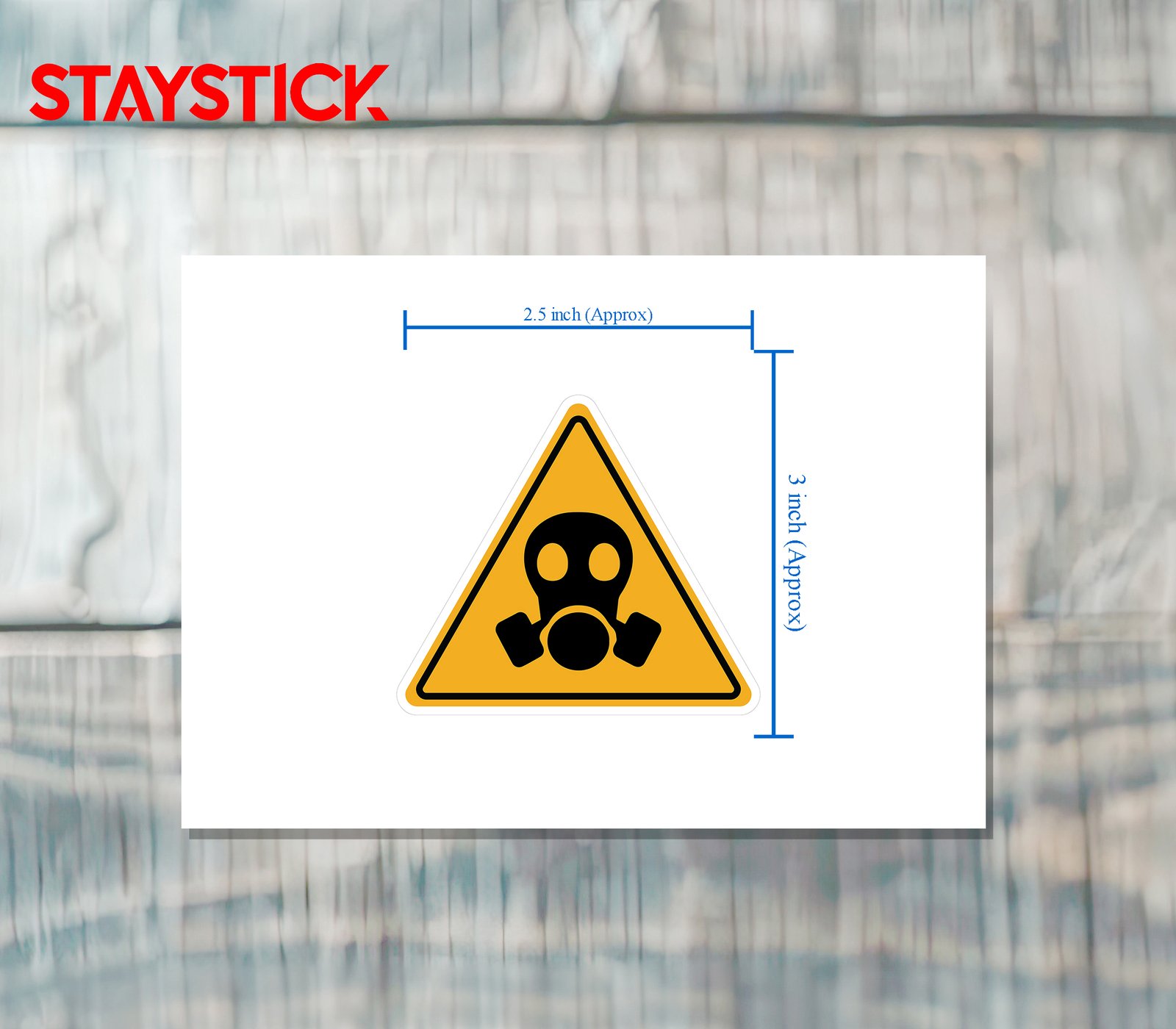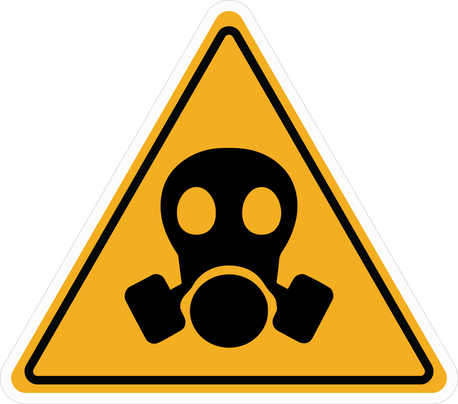 This triangular warning sticker features a bold yellow background bordered in black, with a prominent black gas mask symbol at the center. It is designed to alert individuals of potential hazards such as toxic fumes, chemical vapors, or airborne contaminants. The clear and universally recognized gas mask icon warns workers and visitors that protective respiratory equipment must be worn in the designated area. Commonly used in industrial environments, chemical plants, laboratories, or construction sites, this safety sticker serves as an essential visual reminder to prevent inhalation risks and ensure workplace safety compliance.