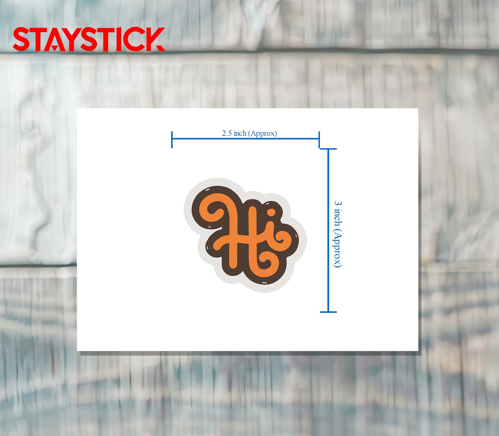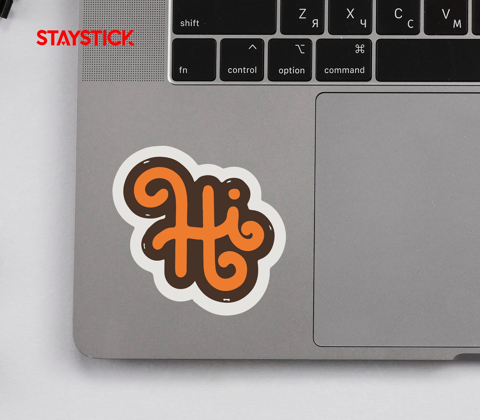 A playful, hand-drawn emblem featuring looping, calligraphic strokes in vibrant orange set against a deep chocolate-brown interior. The design sits on a clean white sticker die-cut with soft, scalloped edges and tiny glossy specks that add a tactile, vinyl feel.