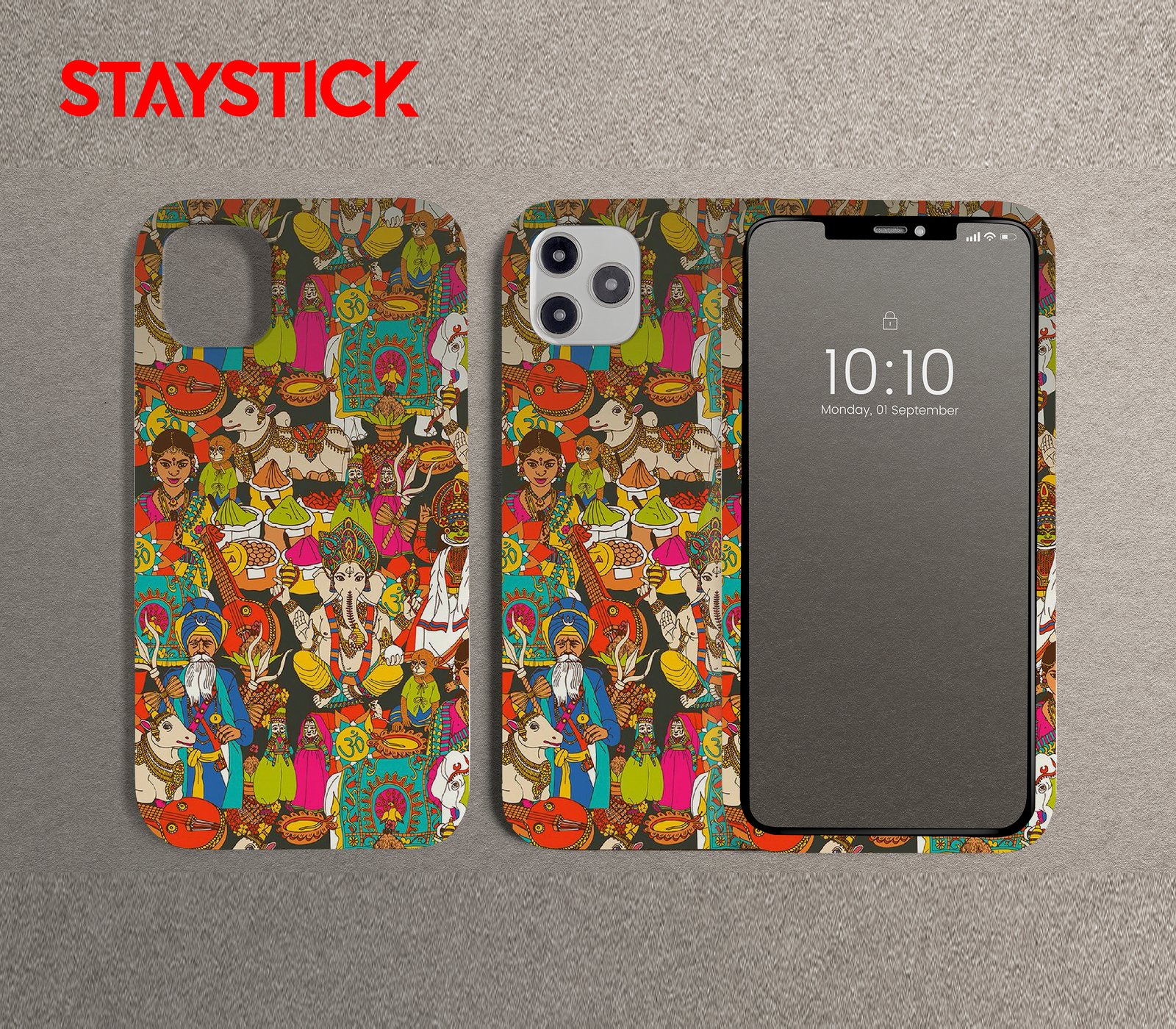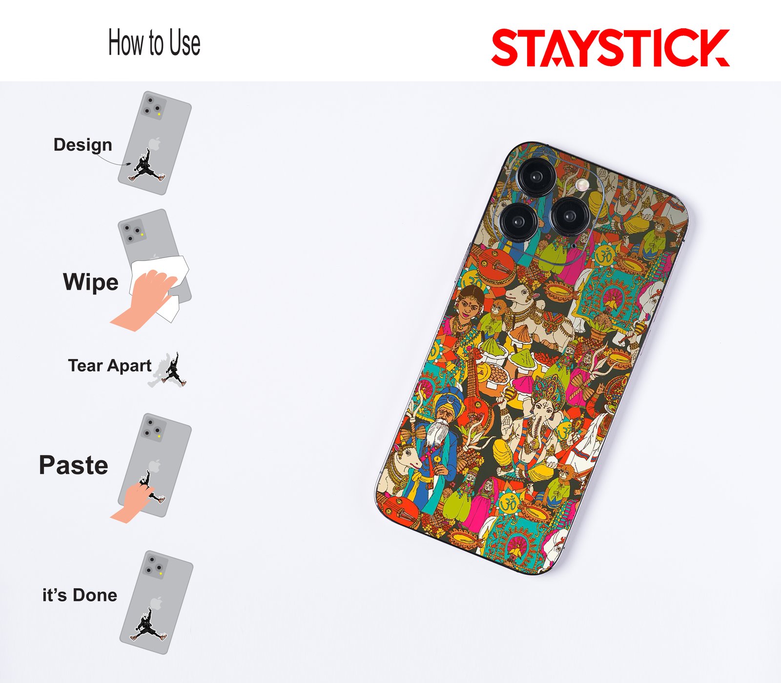 Turn your phone into a celebration of India’s vibrant heritage with this premium mobile back skin sticker. Featuring beautifully illustrated elements — from divine figures and decorated cows to traditional attire, musical instruments, spices, and festive rituals — this design is a tribute to the country’s rich cultural tapestry. Bright reds, blues, yellows, and greens combine to create a stunning visual story that radiates joy, spirituality, and tradition. Made with high-quality, scratch-resistant vinyl, it not only protects your device from everyday wear but also adds a bold, meaningful aesthetic. Easy to apply and residue-free when removed, it’s perfect for anyone who loves Indian art, festivals, and culture in every detail.