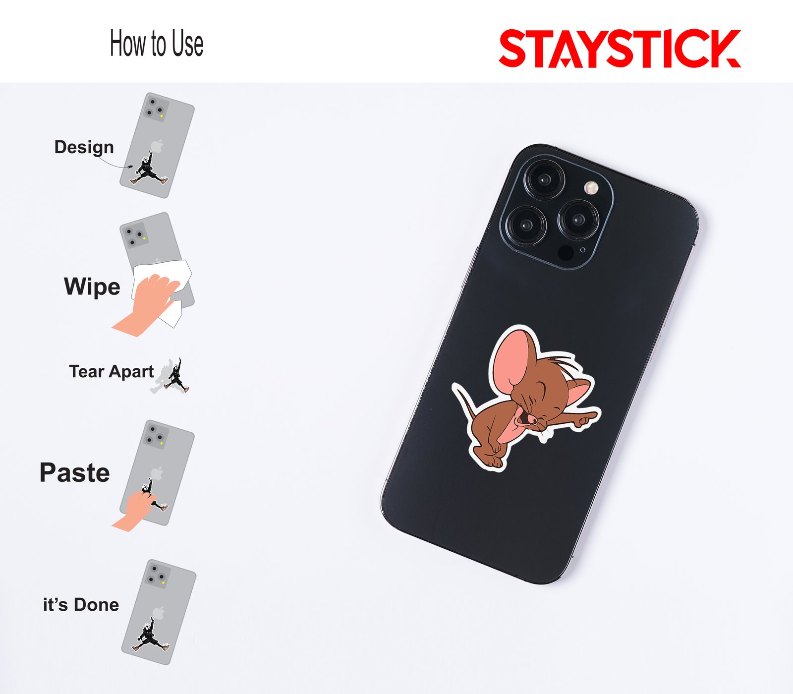 This mobile back sticker is a premium-quality vinyl accessory designed to instantly enhance the look of your smartphone with a touch of fun and nostalgia. Featuring the beloved cartoon character Jerry from the classic series Tom and Jerry, the sticker captures Jerry in a playful dabbing pose, adding a modern, humorous twist to a timeless character. The design is printed with vibrant, fade-resistant colors and a bold white outline, making it stand out beautifully on both light and dark phone surfaces.