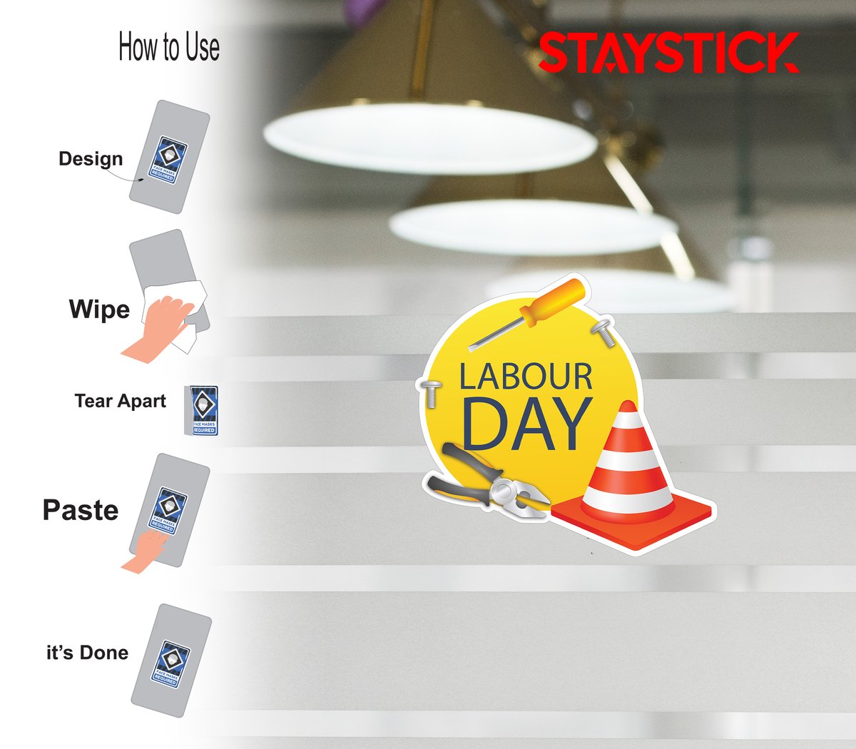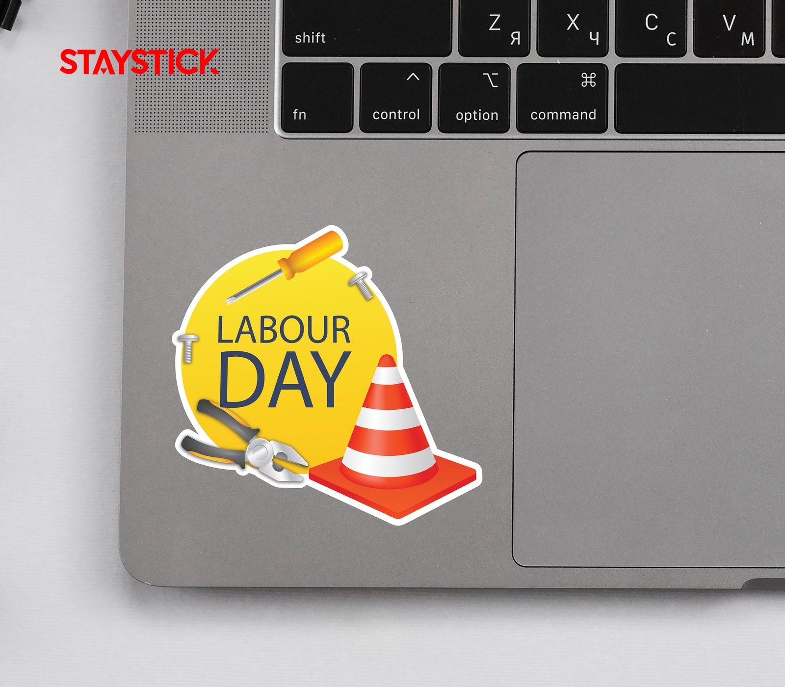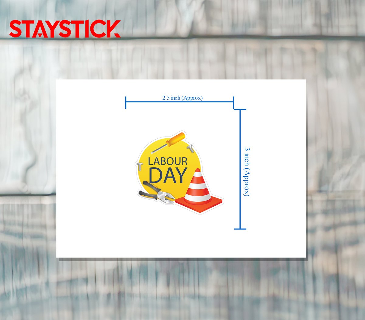 This Labour Day sticker is a creative design that pays tribute to workers and their invaluable contributions. It features a bold yellow circle with the text Labour Day, decorated with essential work tools like a screwdriver, pliers, bolts, and a safety cone. The elements symbolize not only hard work and craftsmanship but also the importance of safety and responsibility in every profession. Perfect for decorating laptops, notebooks, workplaces, toolboxes, or event giveaways, this sticker is a meaningful way to celebrate and honor the spirit of labour while spreading positivity and respect for workers.