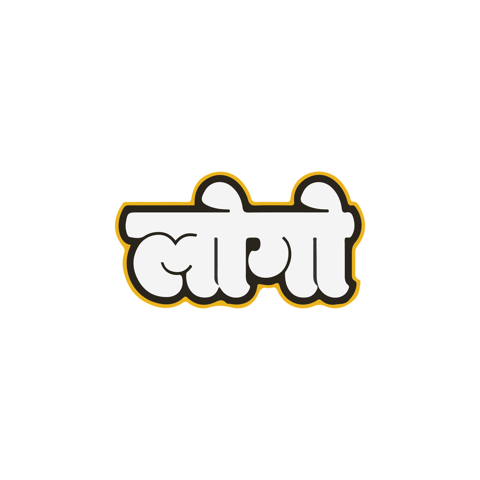 Minimal sticker: white typographic motif with shadowed stroke and yellow accent.
