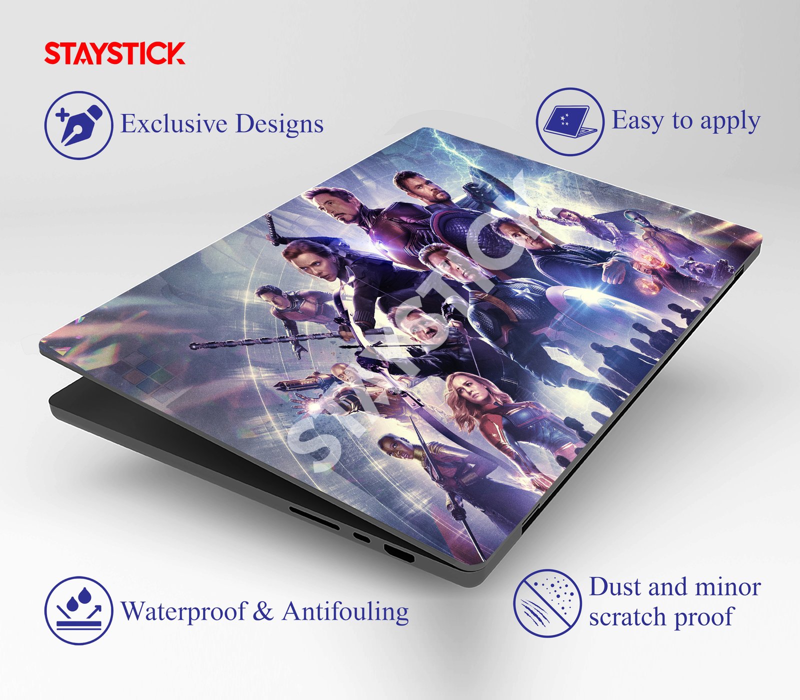\Stylish laptop skin featuring Marvel Avengers characters, perfect for superhero fans. Scratch-resistant and durable design that gives your laptop a bold and unique look.”