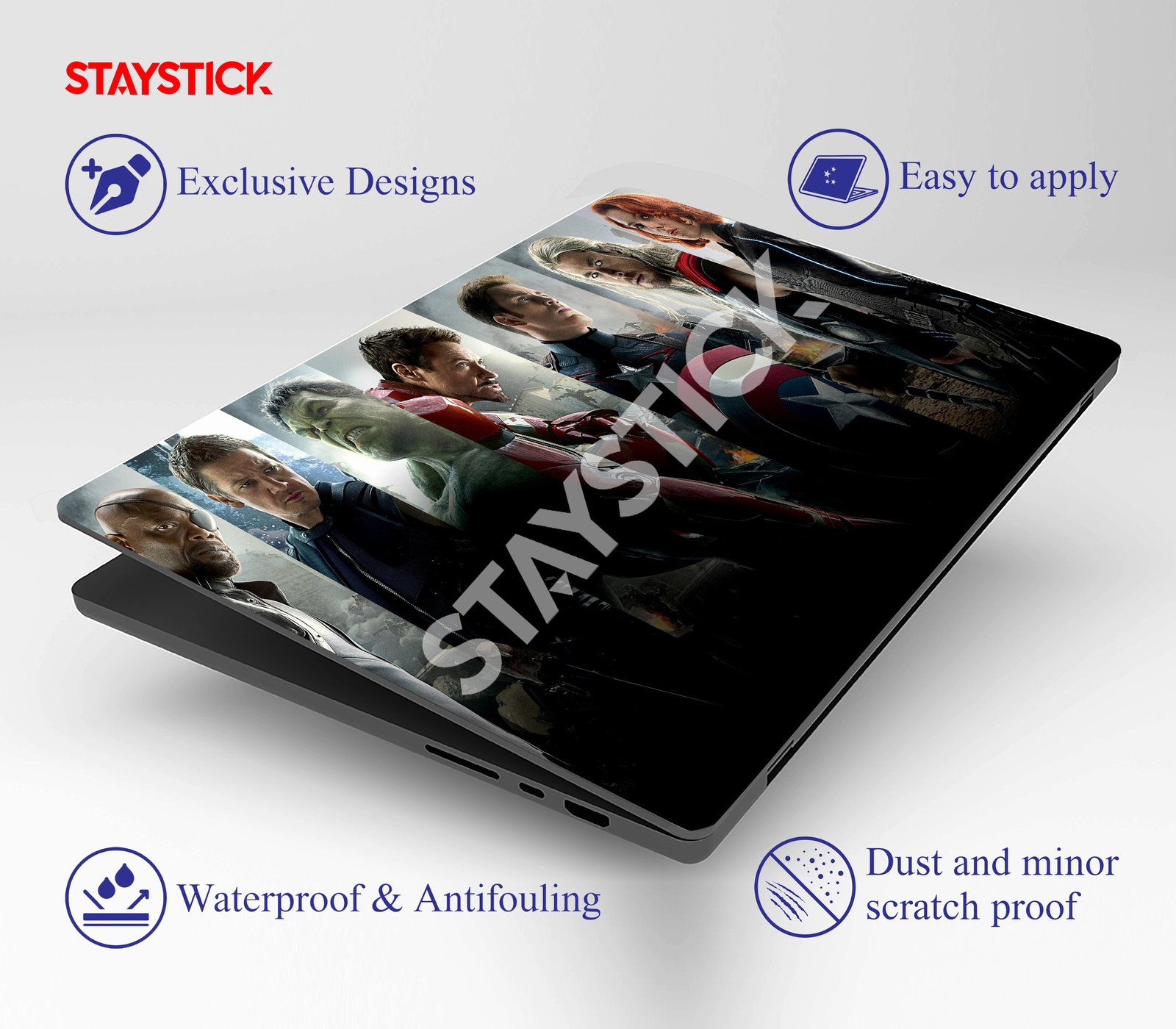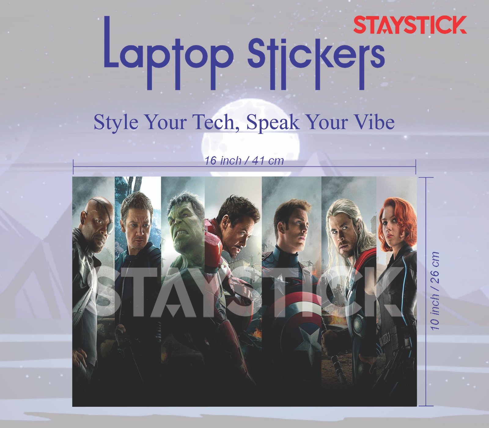 Stylish laptop skin featuring Marvel Avengers characters, perfect for superhero fans. Scratch-resistant and durable design that gives your laptop a bold and unique look.”