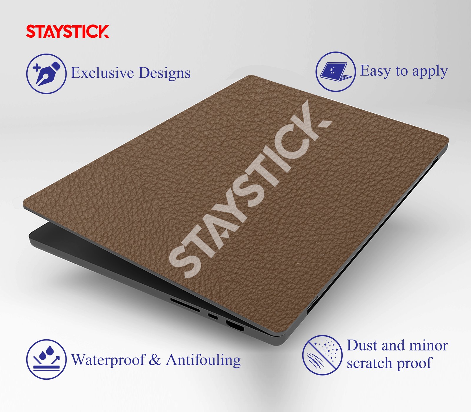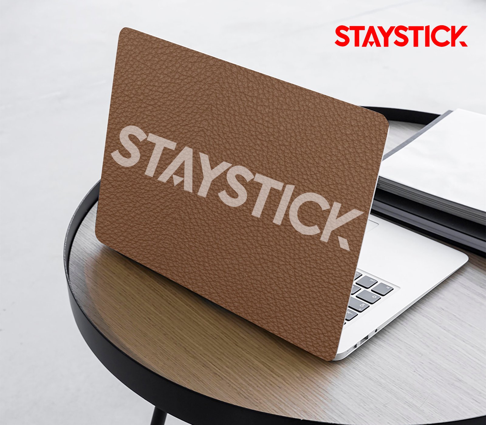 Premium brown leather-textured laptop skin that combines elegance with durable protection.