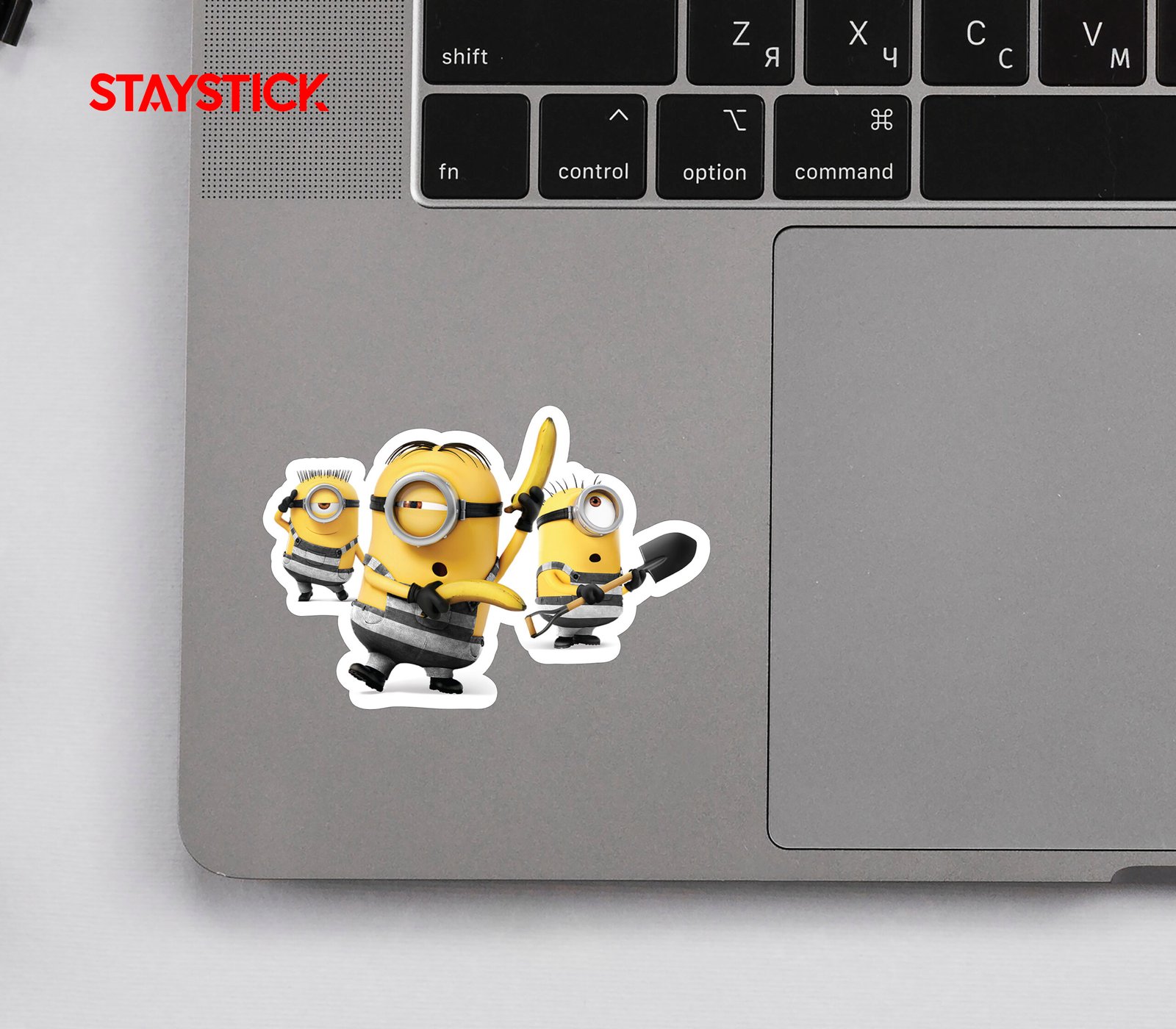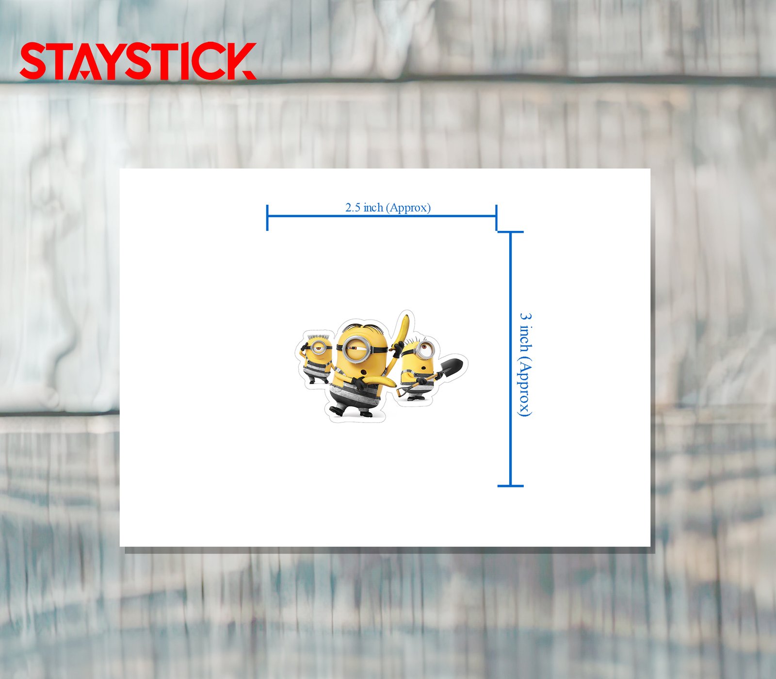 This durable vinyl sticker features three hilarious Minions dressed in black and white striped jail outfits. One Minion joyfully holds a banana, while another carries a shovel, hinting at a potential jailbreak. Perfect for decorating laptops, water bottles, notebooks, or any smooth surface. A fun and quirky addition for fans of the Despicable Me franchise and anyone who loves these cute, chaotic characters. Waterproof and long-lasting.