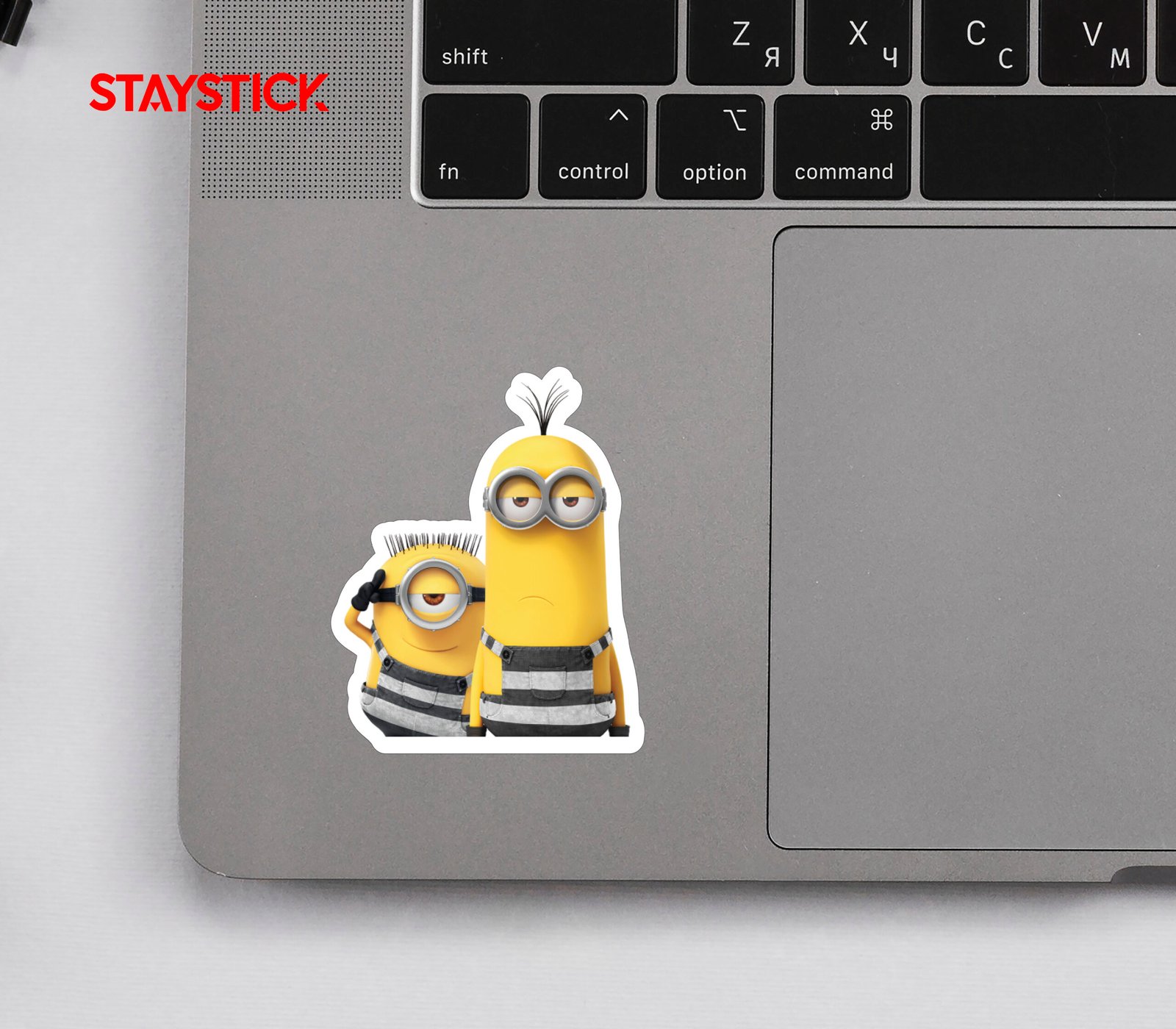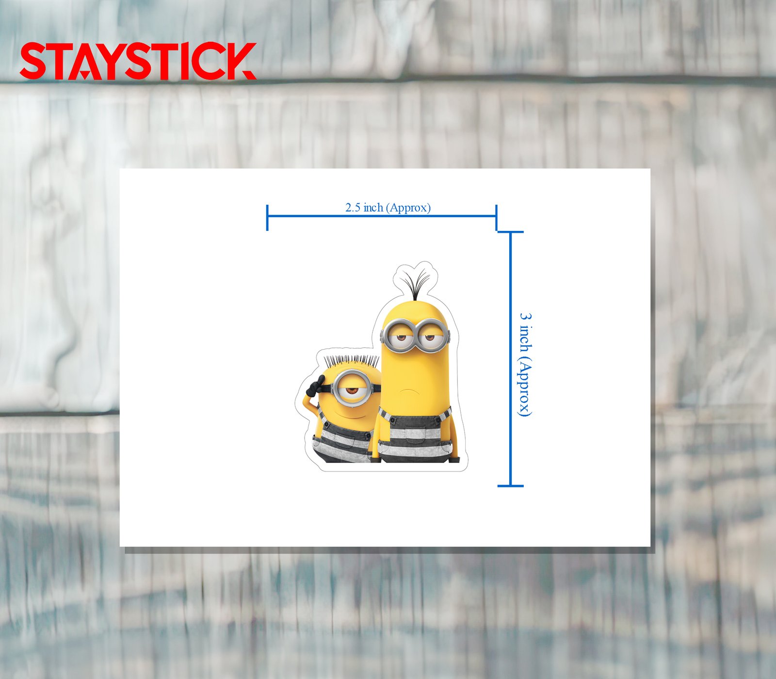This adorable sticker features two Minions dressed in striped jail outfits, one with a serious expression and the other looking mischievous. It’s a fun and quirky way to personalize your belongings. Made with high-quality, durable vinyl, this sticker is perfect for decorating laptops, water bottles, notebooks, and more. Show off your love for Despicable Me and the Minions with this unique and eye-catching design.