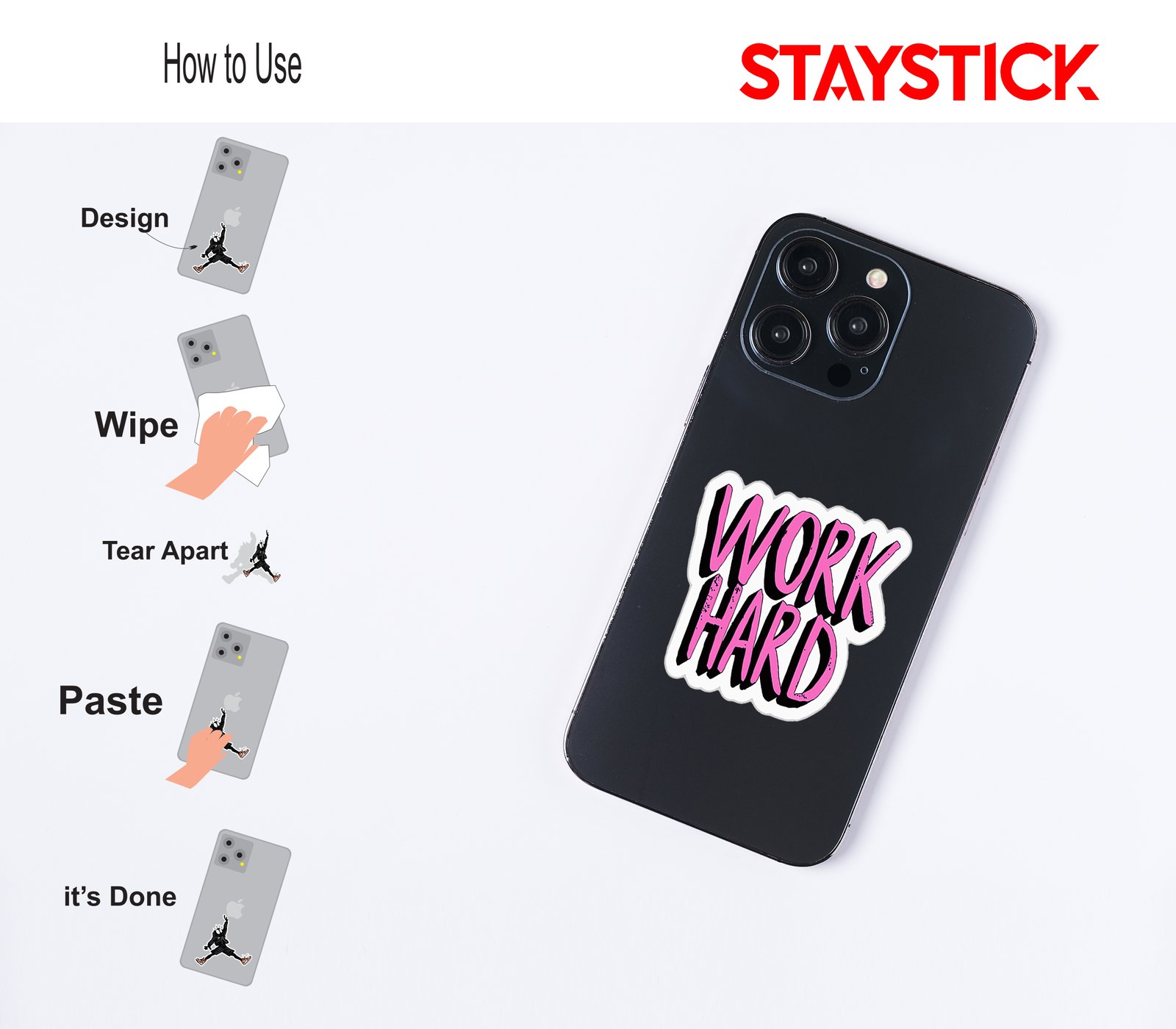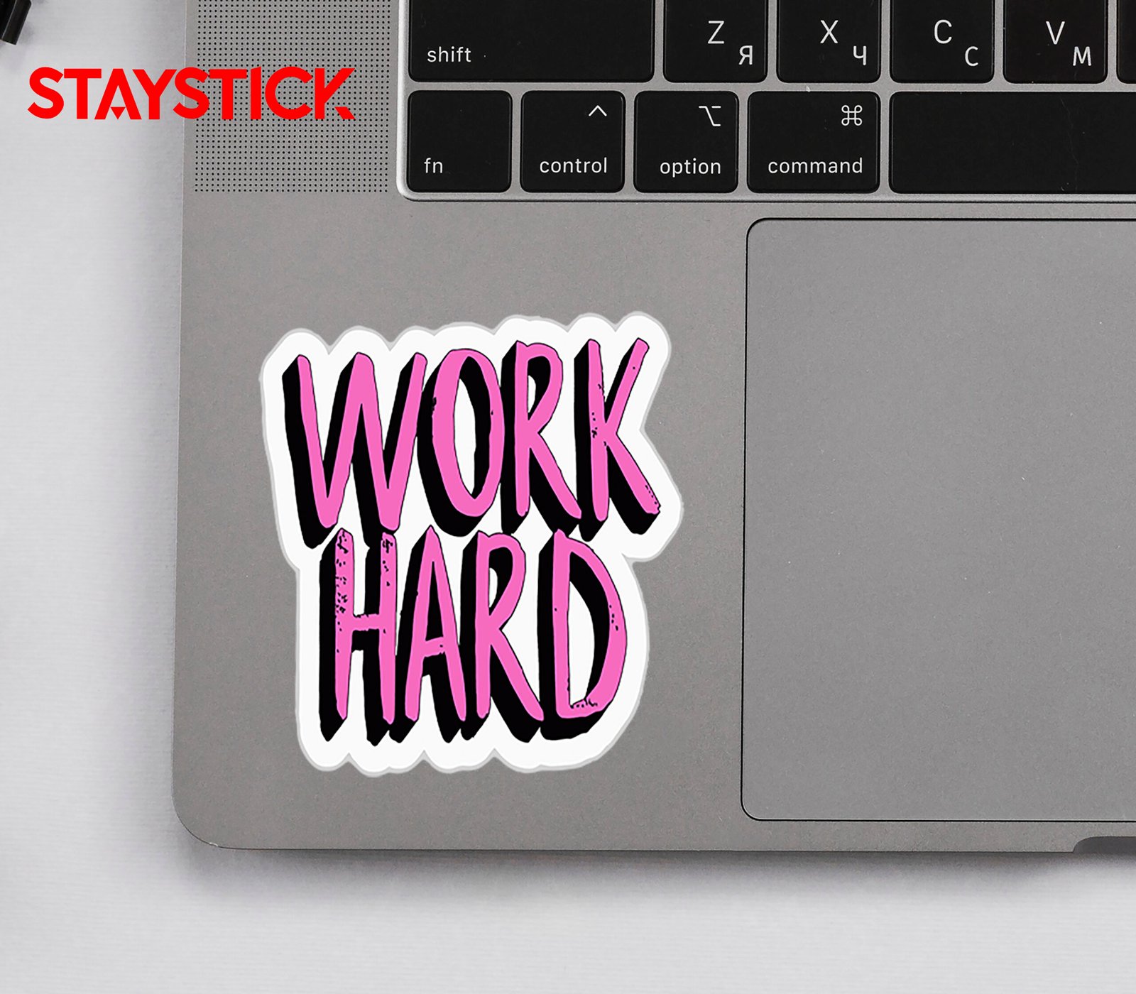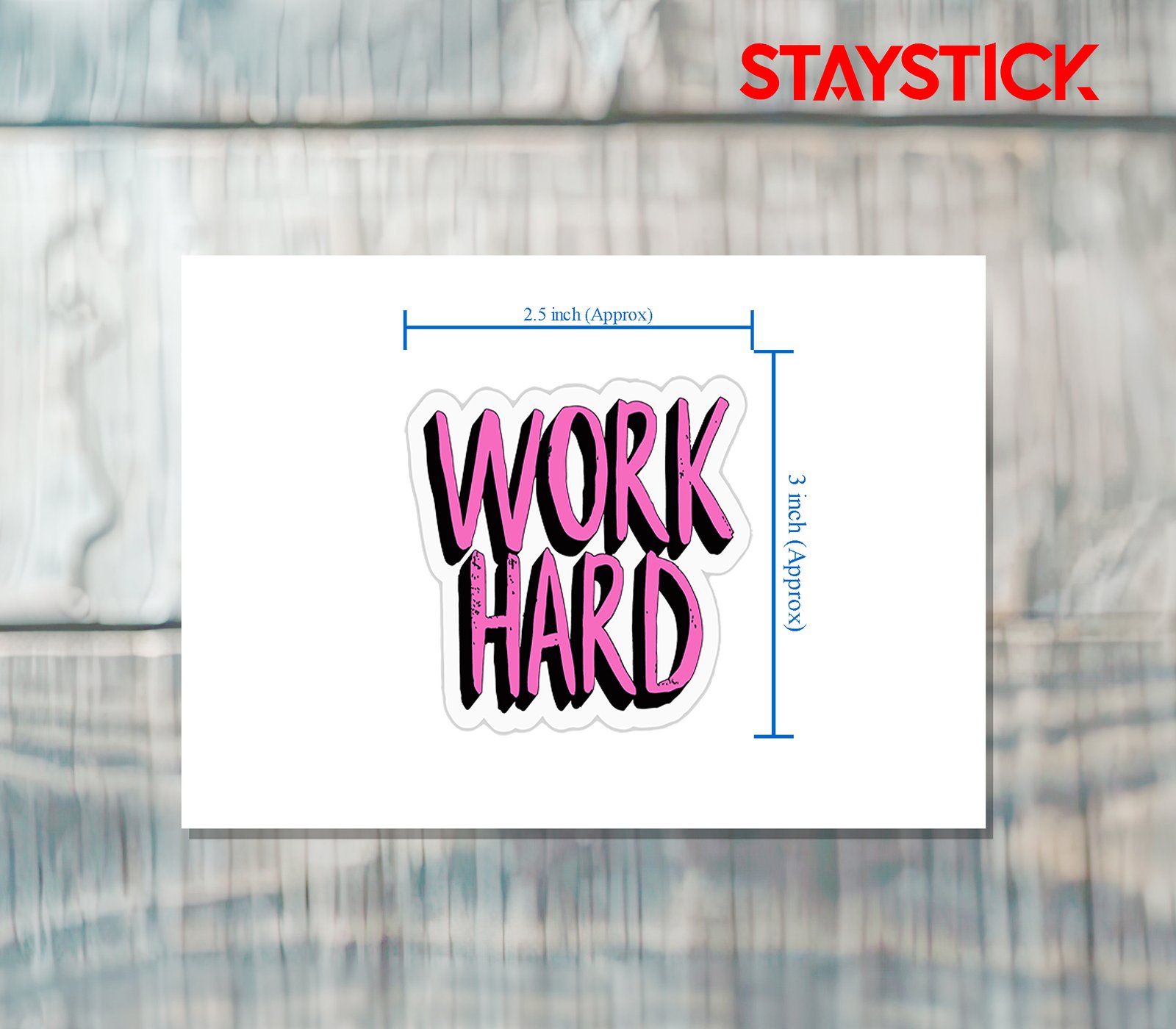This sticker showcases the powerful motivational phrase “WORK HARD” in large, bold, and stylish pink lettering with a striking black shadow effect that adds depth and intensity to the design. The white outline surrounding the text makes it pop against any background, ensuring high visibility and a vibrant look. Its artistic, slightly distressed texture gives it a dynamic and energetic feel, symbolizing persistence and determination. This sticker is not just decorative but also inspirational, serving as a constant reminder to stay committed, dedicated, and focused on achieving your goals. Perfect for laptops, notebooks, water bottles, or workspaces, it combines motivation with modern design, making it both visually appealing and meaningful.