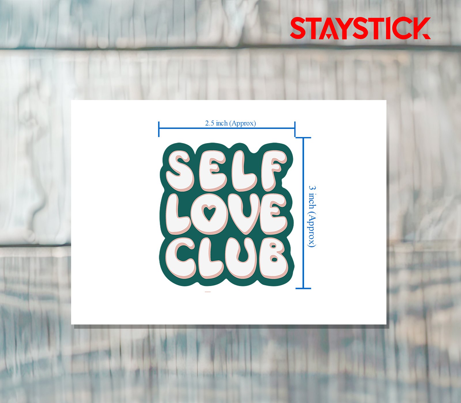 “This sticker features the inspiring phrase ‘Self Love Club’ written in large, bubbly, retro-style letters with a soft white fill and a teal-green outline. The playful design includes a heart shape inside the letter ‘O,’ symbolizing love and kindness toward oneself. Its cheerful and uplifting style makes it perfect for decorating laptops, notebooks, water bottles, or journals as a daily reminder to embrace positivity, self-care, and confidence. The sticker not only adds a fun and stylish touch to personal items but also spreads an empowering message of self-acceptance and love.”