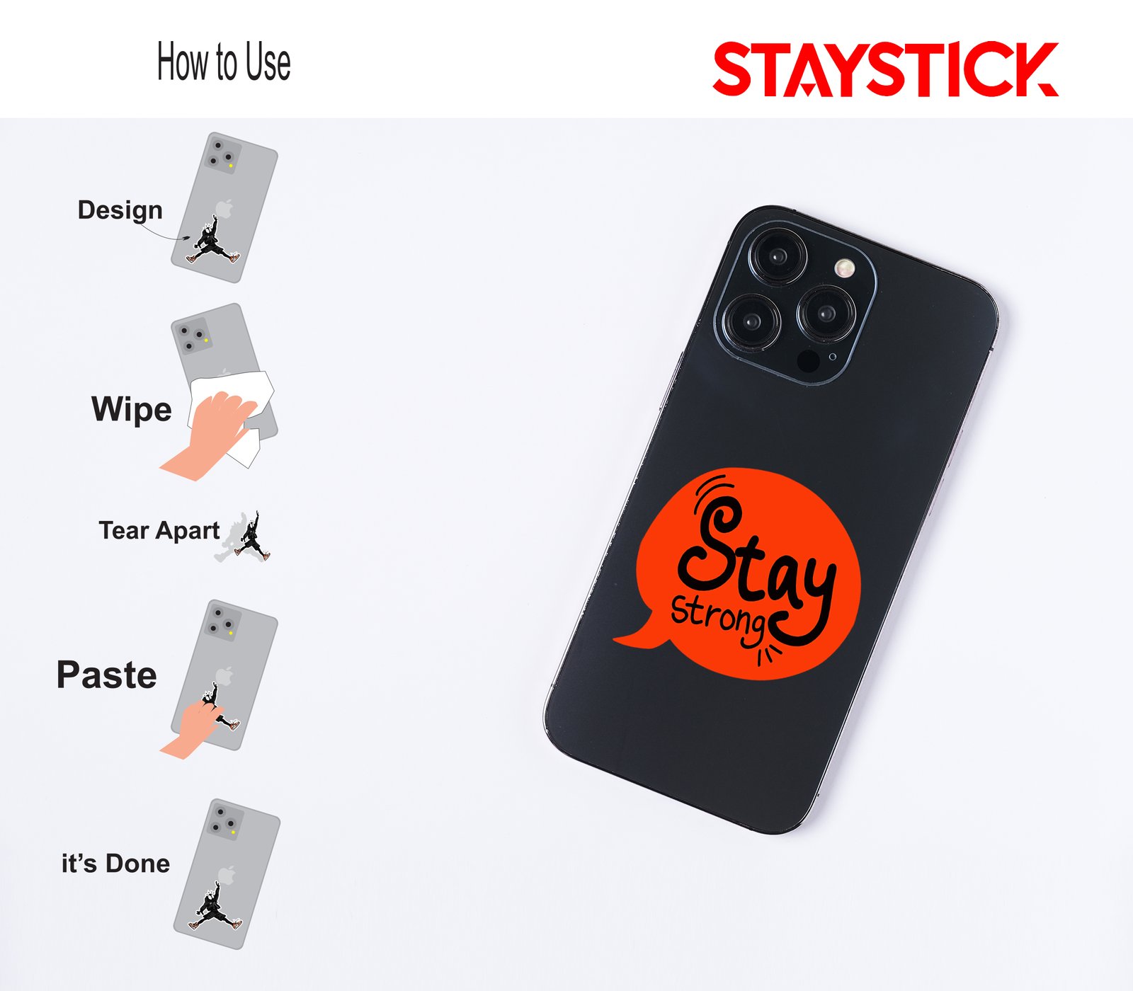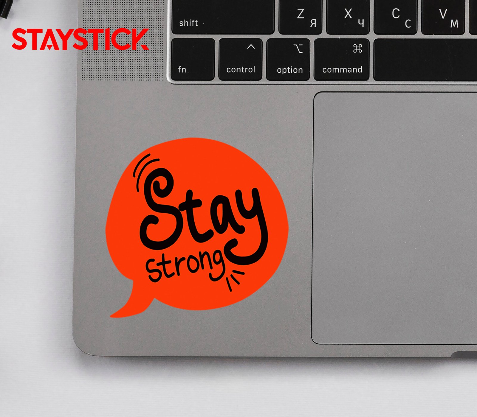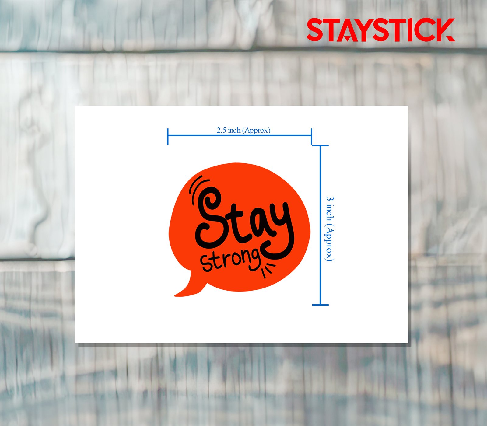 “This vibrant motivational sticker features the uplifting phrase ‘Stay Strong’ written in a bold, artistic font inside a bright red speech bubble. The playful hand-drawn style of the letters, combined with small accent lines, gives it an energetic and encouraging feel. Designed to spread positivity and resilience, this sticker is perfect for decorating laptops, notebooks, water bottles, or any personal space to serve as a daily reminder of strength and perseverance. Its eye-catching design makes it not only inspiring but also stylish and fun.”