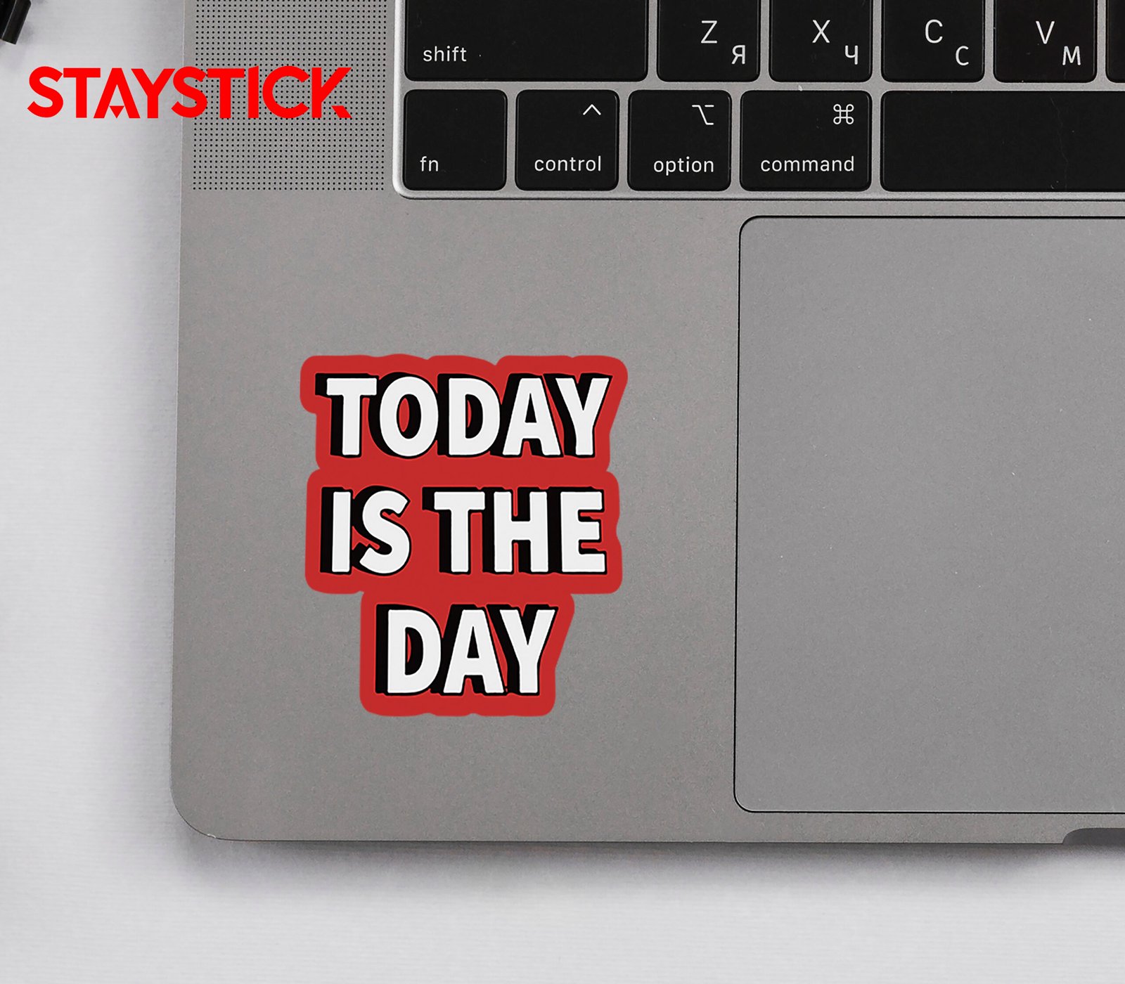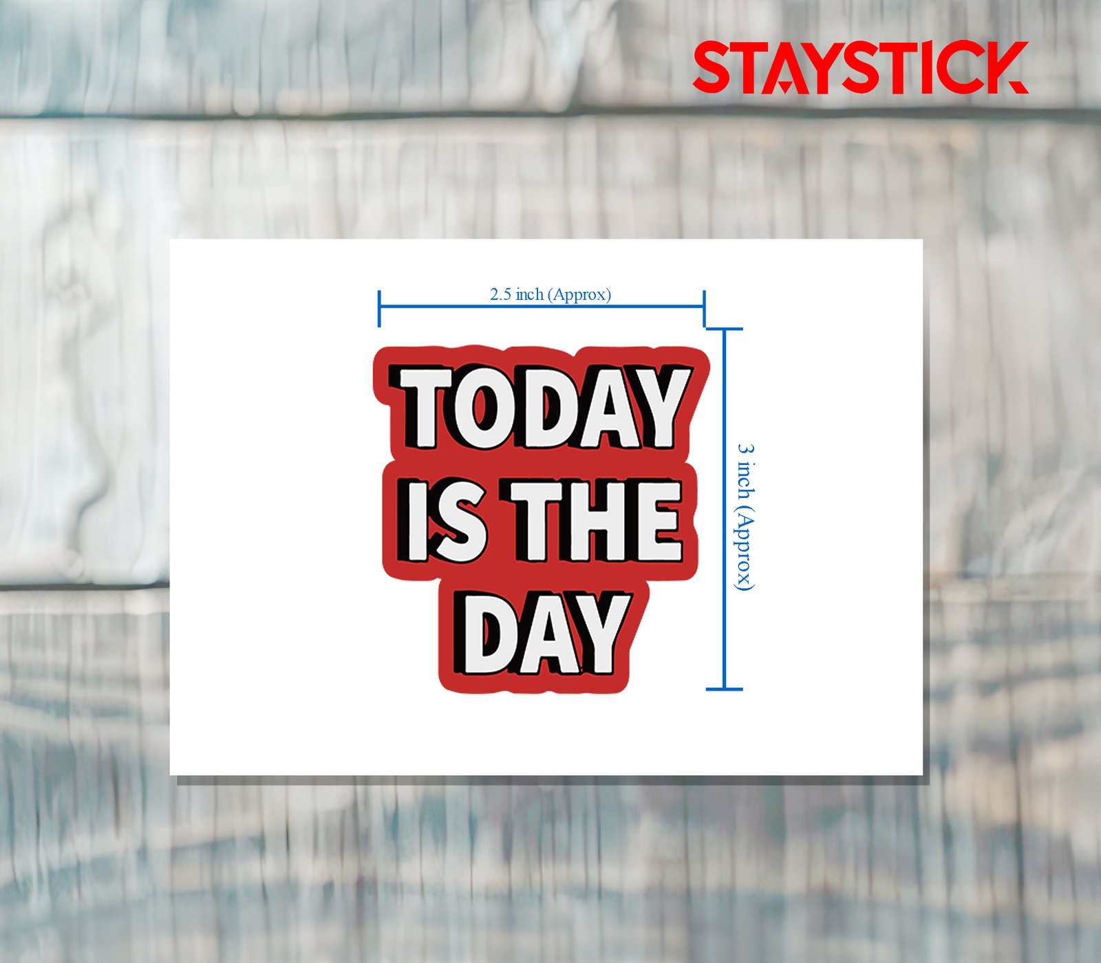 “This powerful motivational sticker features the bold phrase ‘TODAY IS THE DAY’ in striking white capital letters outlined with a thick black border, all set against a vibrant red background that instantly grabs attention. The strong contrast of colors emphasizes determination, urgency, and positivity, making it a perfect reminder to take action, stay motivated, and seize every opportunity. Whether used on laptops, journals, water bottles, or walls, this sticker radiates energy and encouragement, serving as a daily push to make the most of the present moment.”